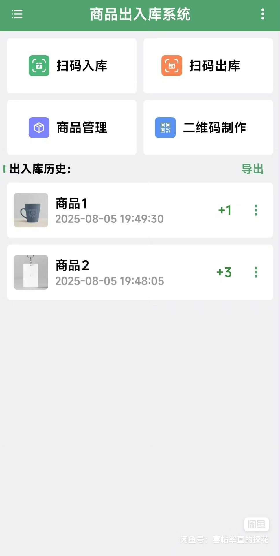 这款商品出入库系统APP集成了扫码入库、扫码出库、商品信息管理以及二维码制作等多项实用功能。