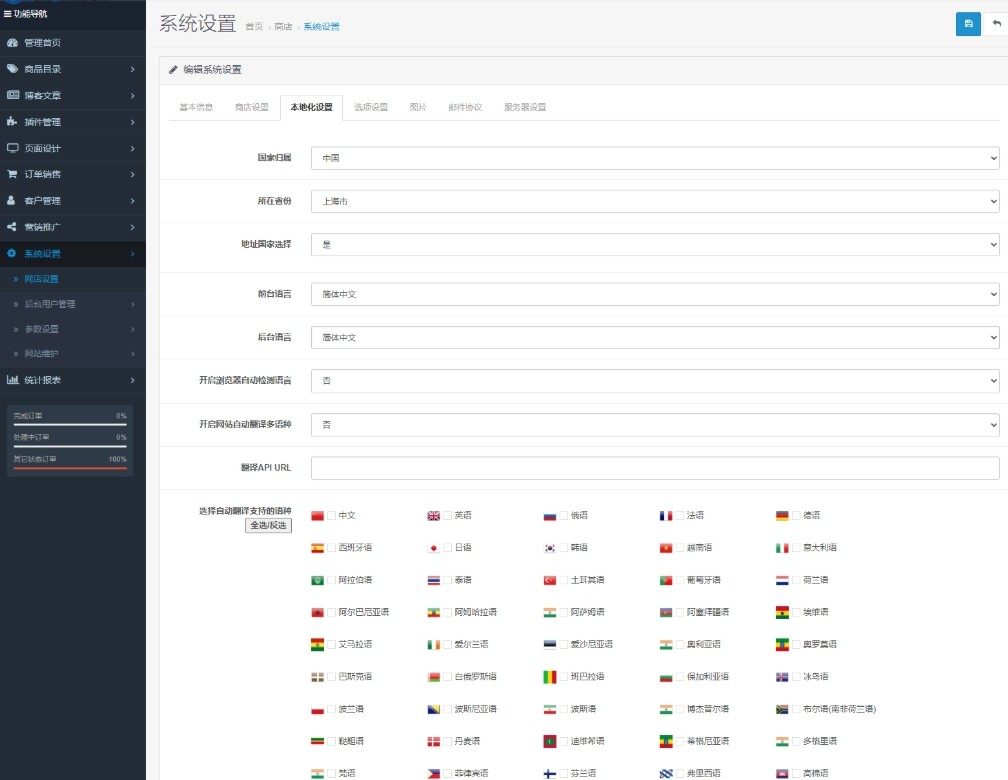 系统默认集成中英文双语后台界面,用户可根据需要自由切换。