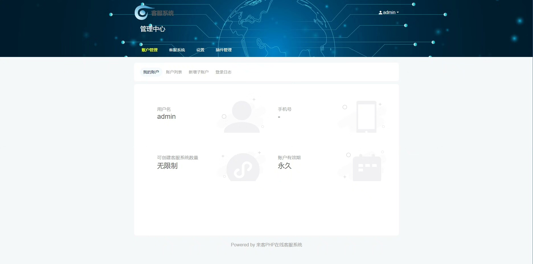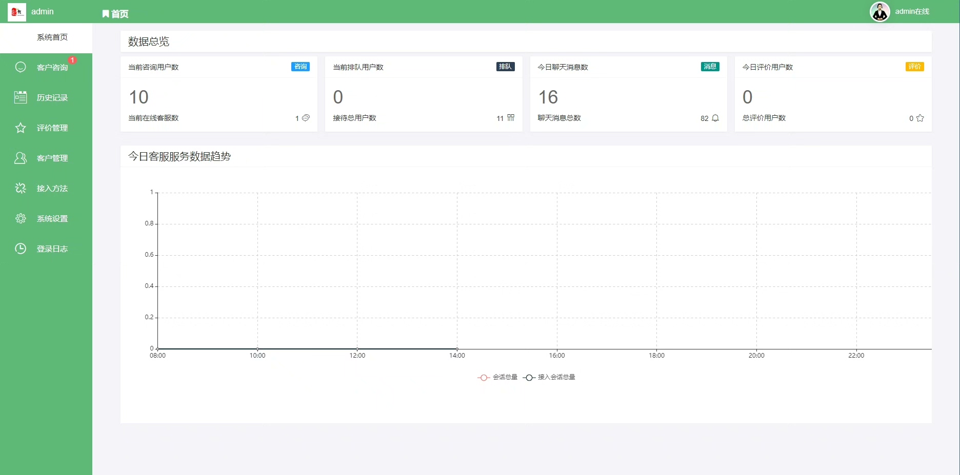 系统设有总管理员后台和独立客服后台,可无限添加客服账号,每位客服均可独立管理自己的会话记录。