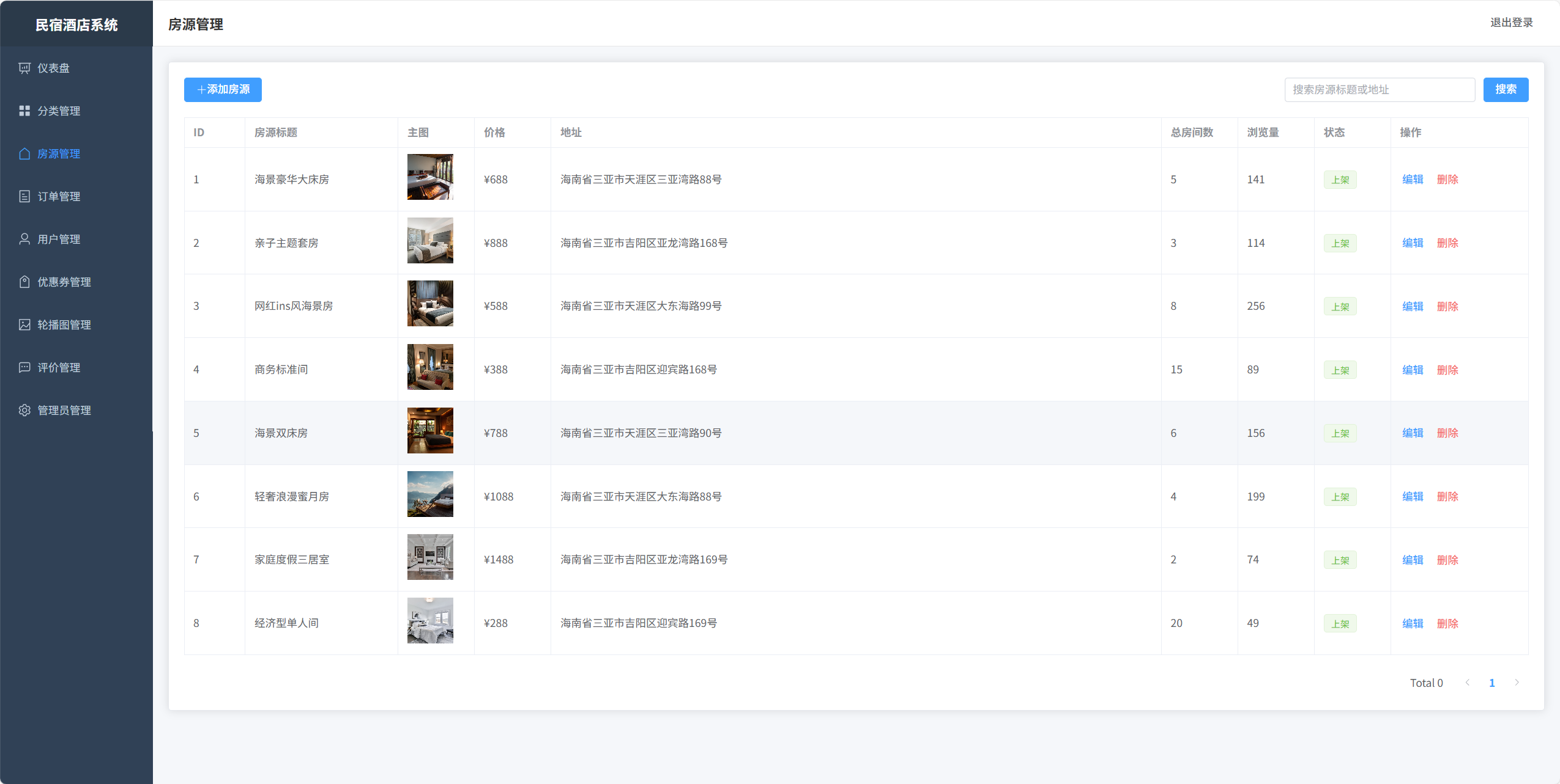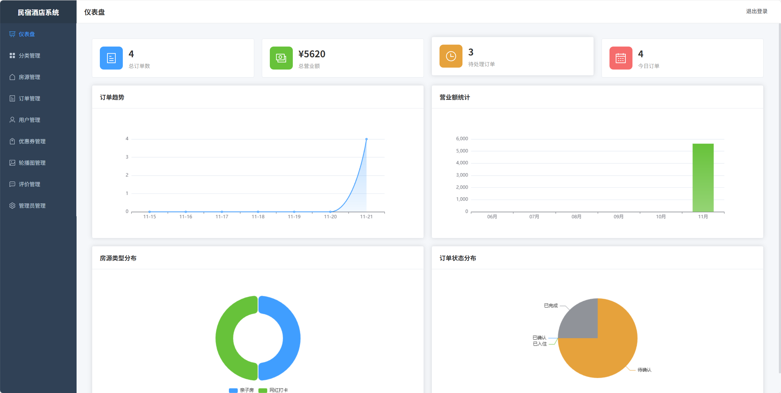 通过可视化面板,用户可轻松管理房源信息、订单状态、用户数据、促销活动等核心内容,提升运营效率,实现智能化管理。