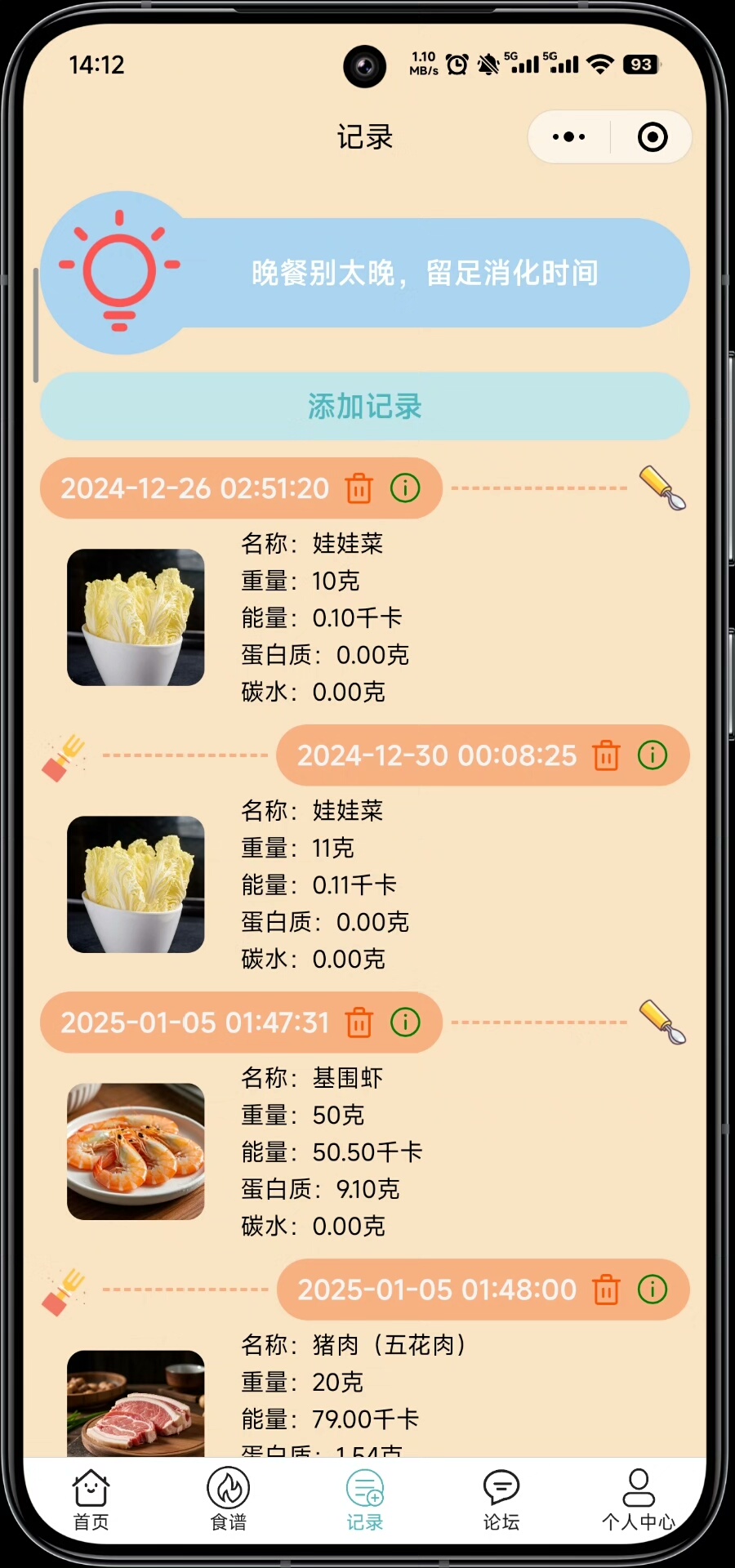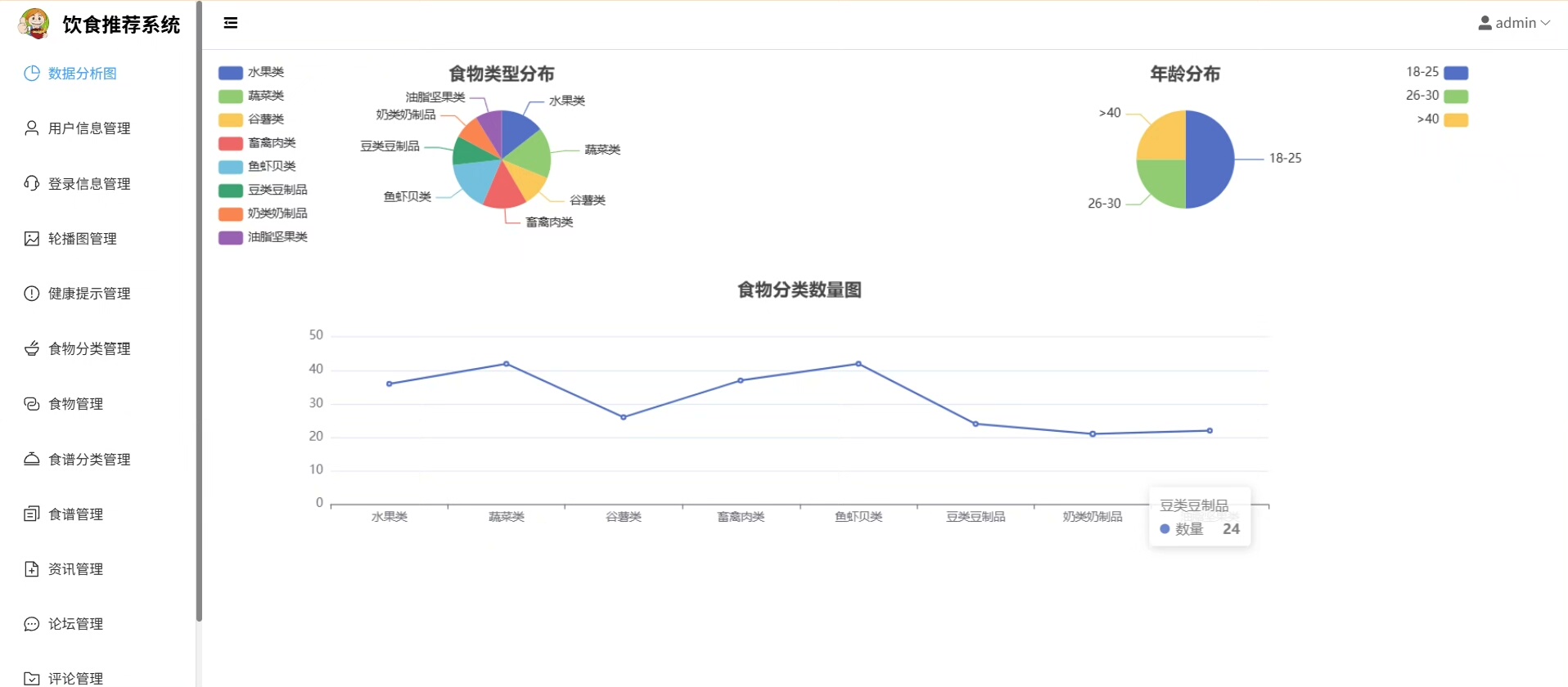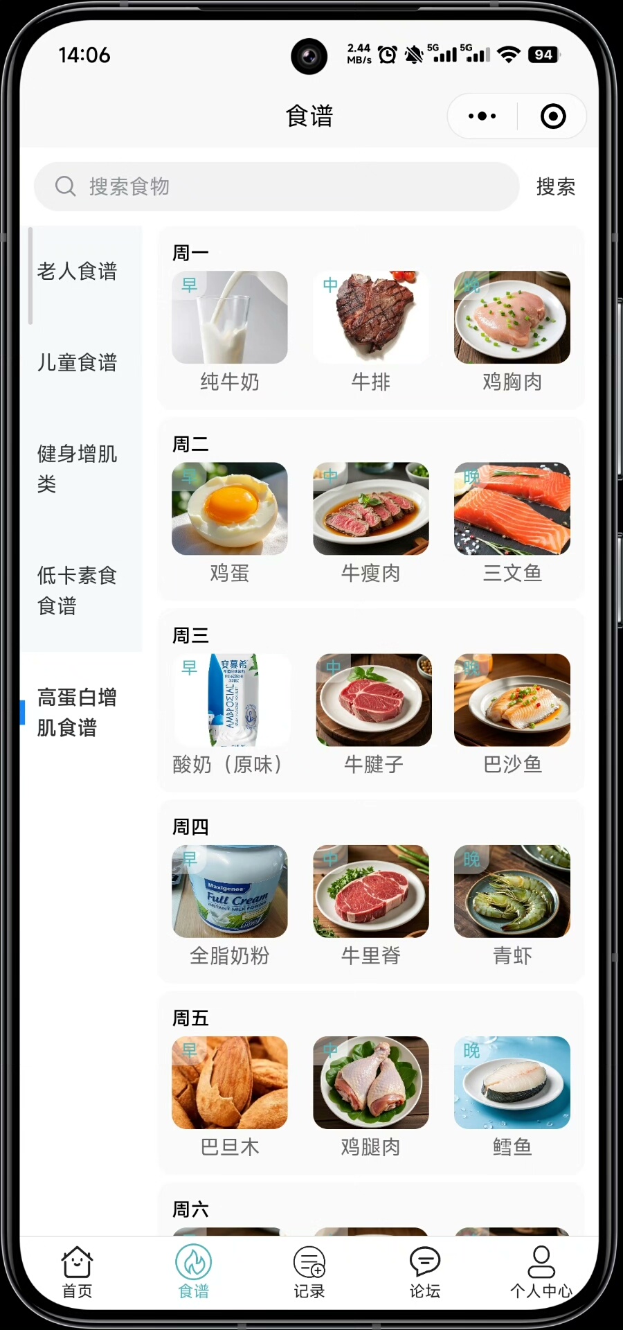 用户可通过小程序端查看个性化推荐食谱、记录每日饮食情况、设置健康目标;管理员则可通过后台管理系统进行菜品信息维护、用户数据监控及内容审核等操作,实现高效运营。