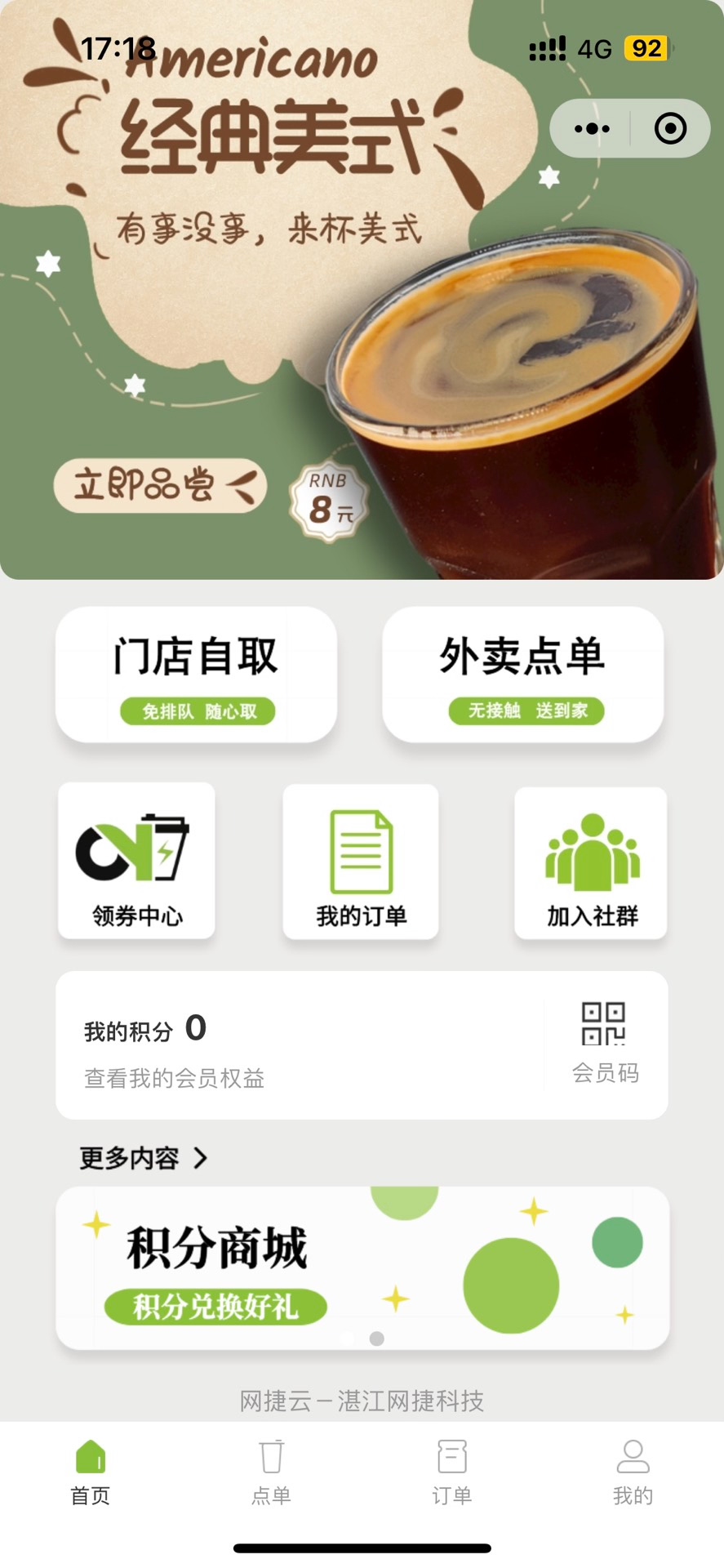 该小程序支持顾客在线浏览菜单、下单支付、选择取餐方式(店内自取或外卖配送),同时配备完善的会员等级体系和积分累计机制。