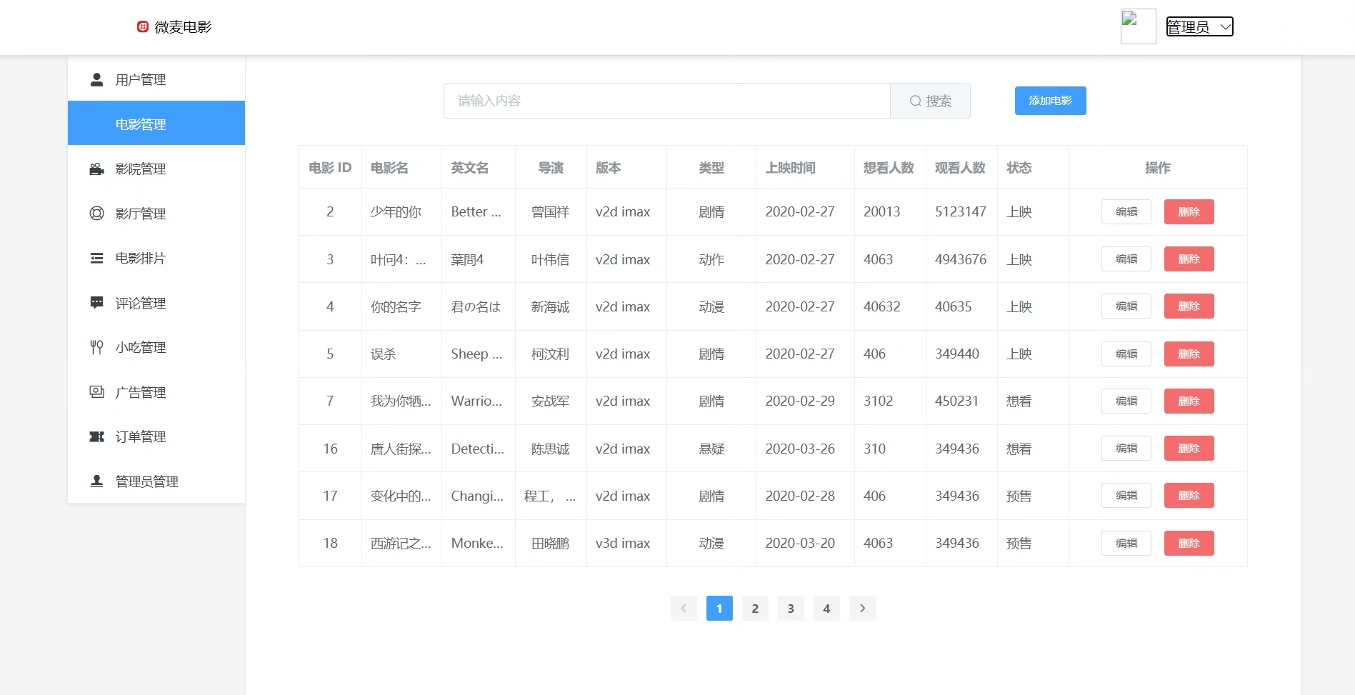系统角色涵盖管理员、普通用户和影院商家,满足多维度管理需求。