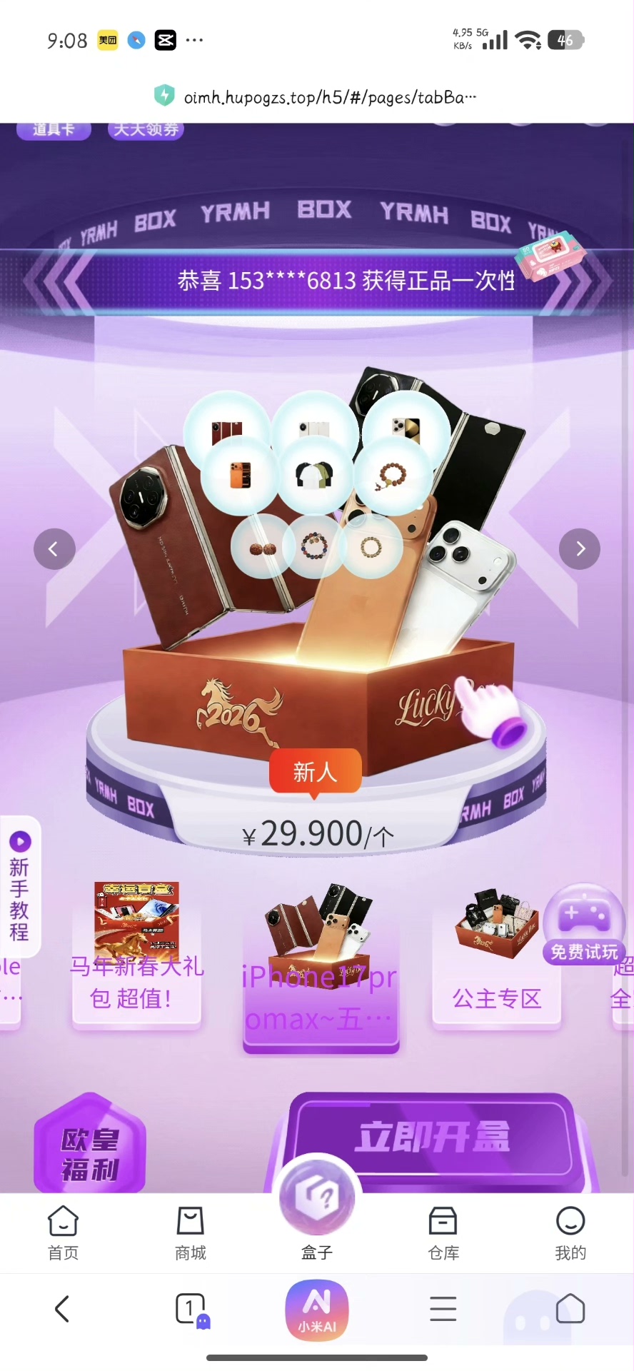 该盲盒系统原生支持H5页面和微信小程序等多种应用场景,无论用户通过手机浏览器还是小程序入口进入,均可享受一致且流畅的抽盒体验。