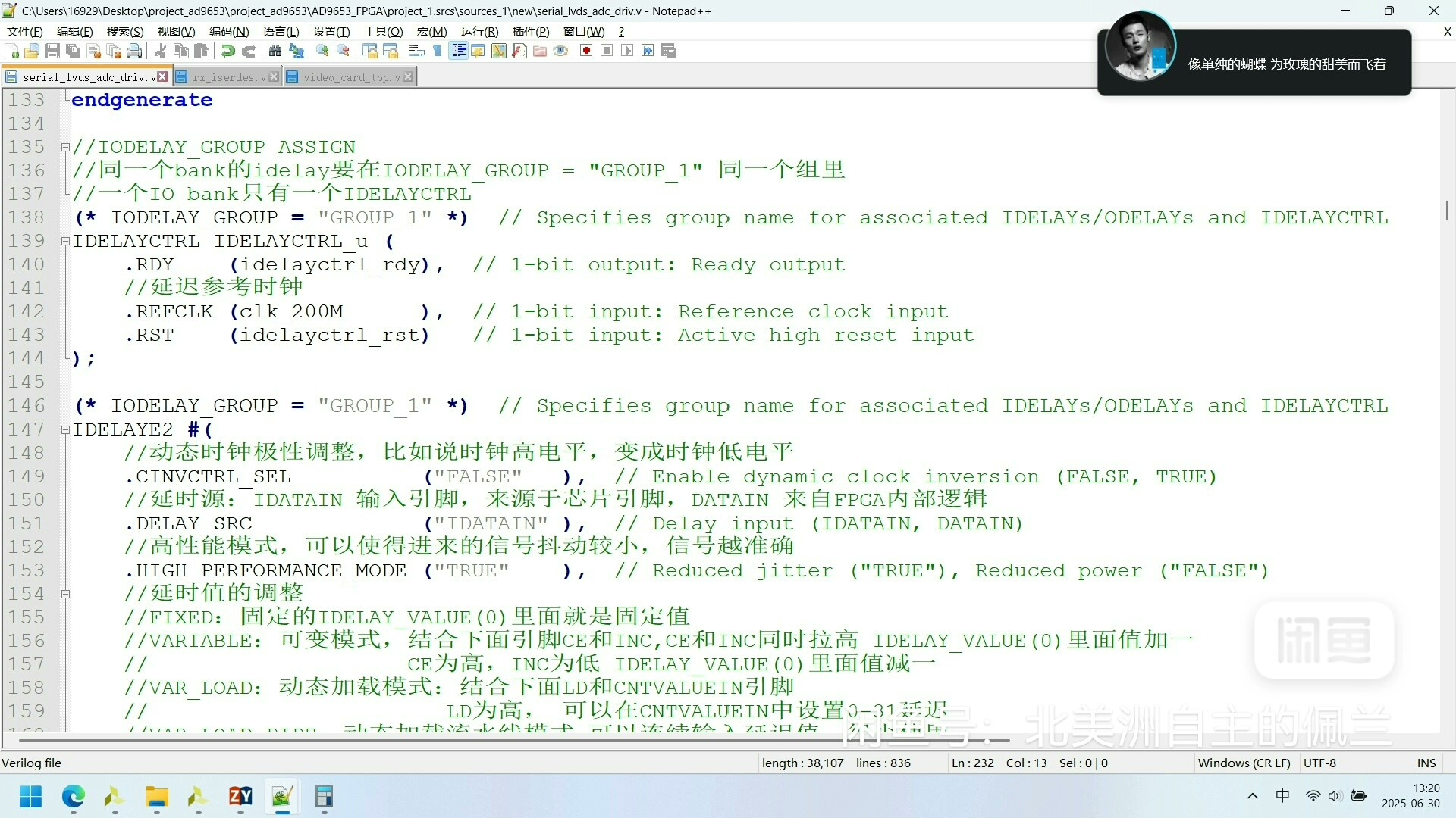 本项目涉及多项核心FPGA开发技术:首先,实现采样率与系统时钟频率之间的精确匹配;其次,深入应用Xilinx IOB内原语如IDELAYE2用于延迟控制、ISERDESE2完成源同步源串行解包、OSERDESE2实现高速并串转换,并结合BUFIO与BUFR实现专用时钟管理;此外,支持LVDS低压差分信号传输协议,保障高速数据稳定传输;同时要求开发者具备熟练阅读AD9253芯片手册与产品技术文档的能力;整体代码遵循工程化规范,结构清晰、可移植性强;包含ADC输出偏移码到补码的准确转换算法;并实现了采样信号自动校准机制,确保输入信号始终处于最佳量化区间,提升系统稳定性与精度。