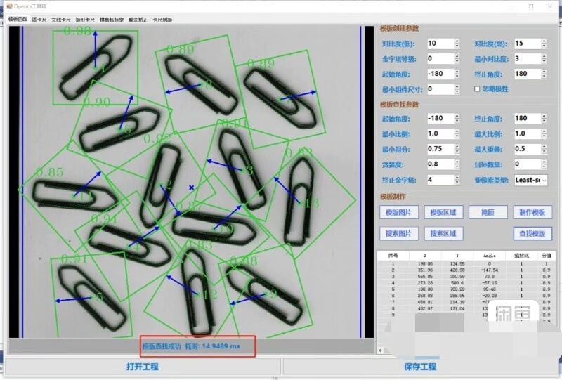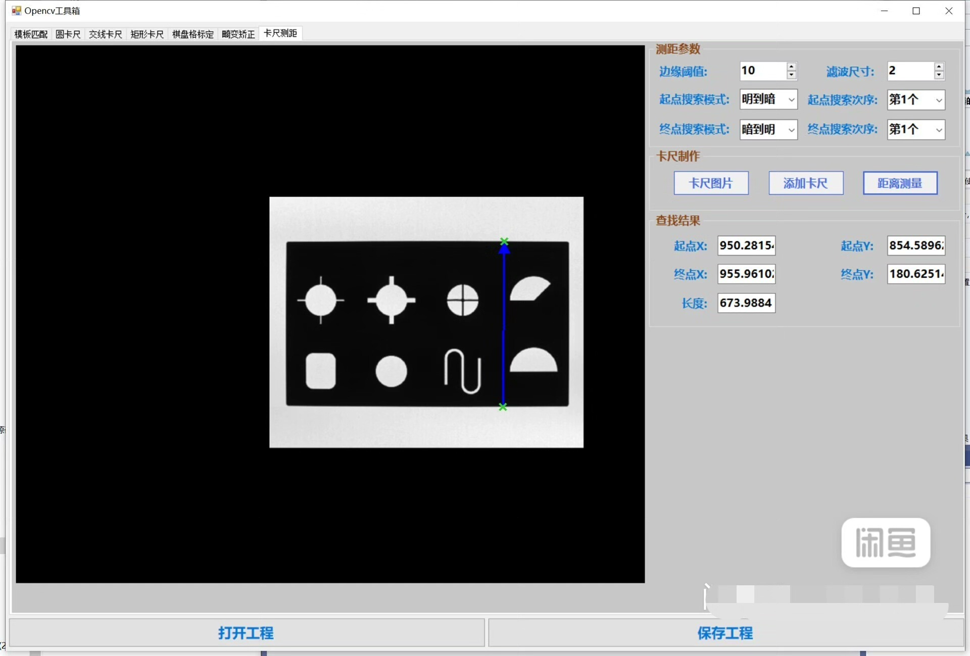 全面覆盖产线常用定位与测量需求:支持高精度模板匹配(TM_CCOEFF_NORMED优化版)、亚像素级找圆卡尺(Hough圆检测+最小二乘拟合)、边缘增强型找线卡尺(Canny+霍夫线变换+随机采样RANSAC)、鲁棒性矩形定位卡尺(轮廓筛选+仿射校正),以及双向/单向测距卡尺工具,所有算法均经实际产线验证。