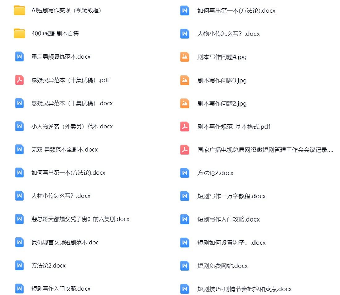 获取超过四百份不同类型的短剧剧本样本,每一份都经过了专业编辑团队的审核与优化,可以直接使用或作为灵感来源。