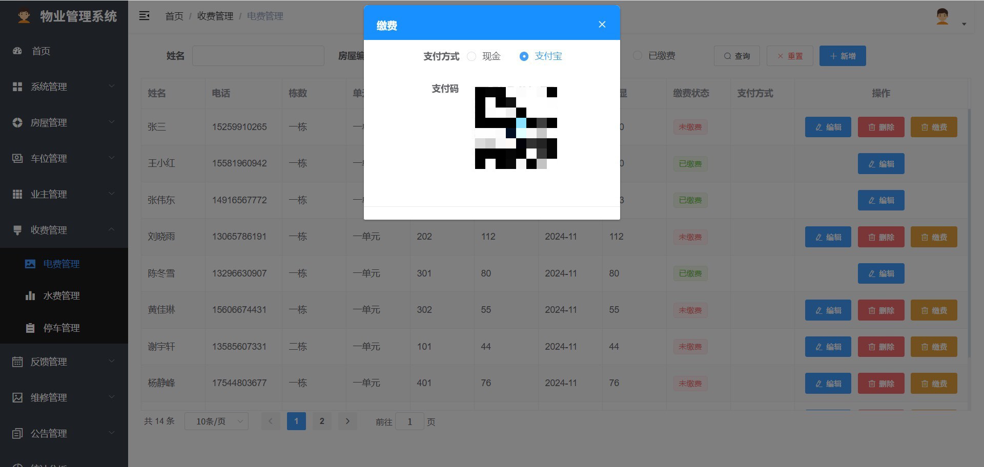 特别支持在线缴费功能,业主可通过系统完成水费、电费、物业费等日常支出的线上支付,提升缴费效率与用户体验。