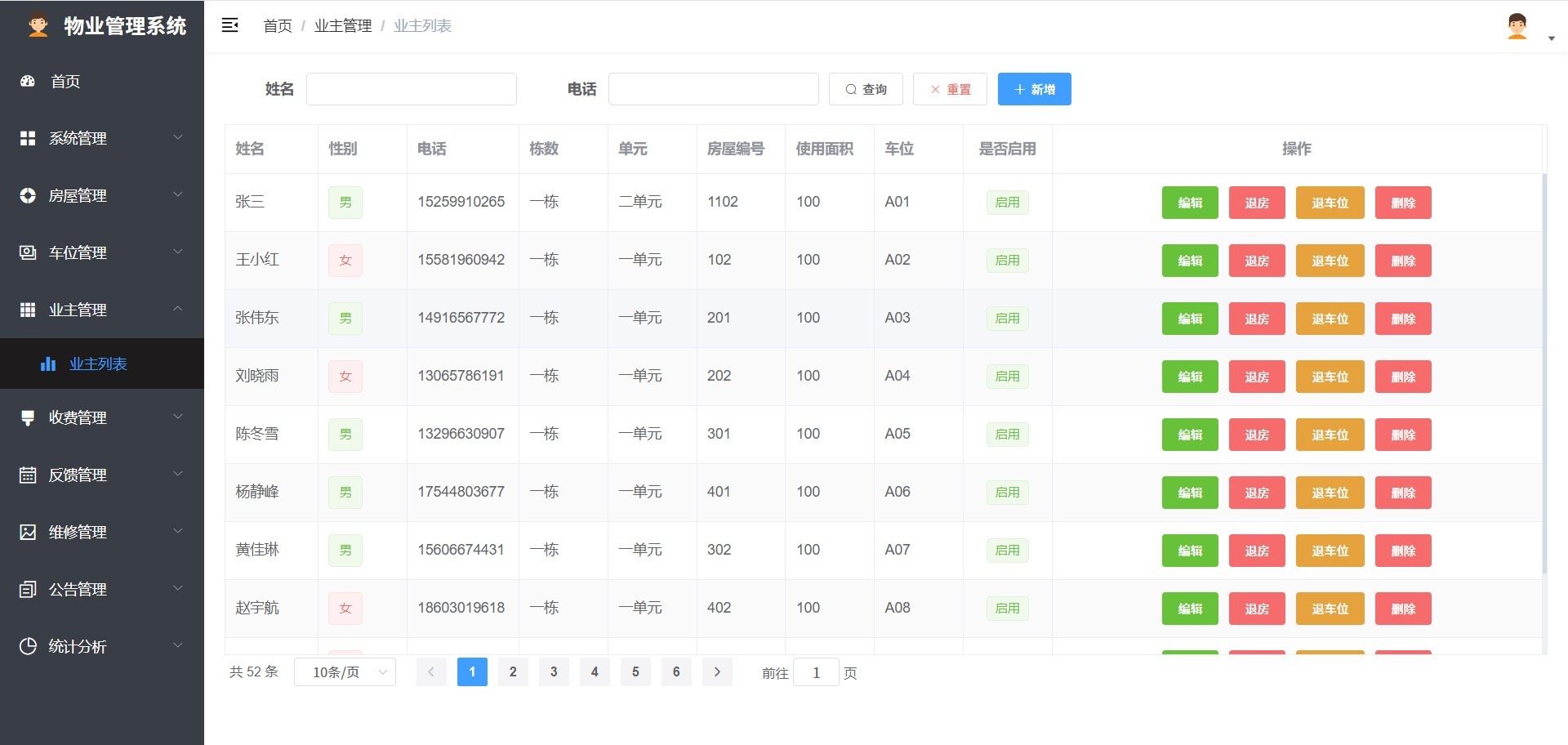 系统集成了多个实用管理模块,包括系统权限管理、业主信息维护、车位分配与监控、费用账单生成及缴费记录追踪等。