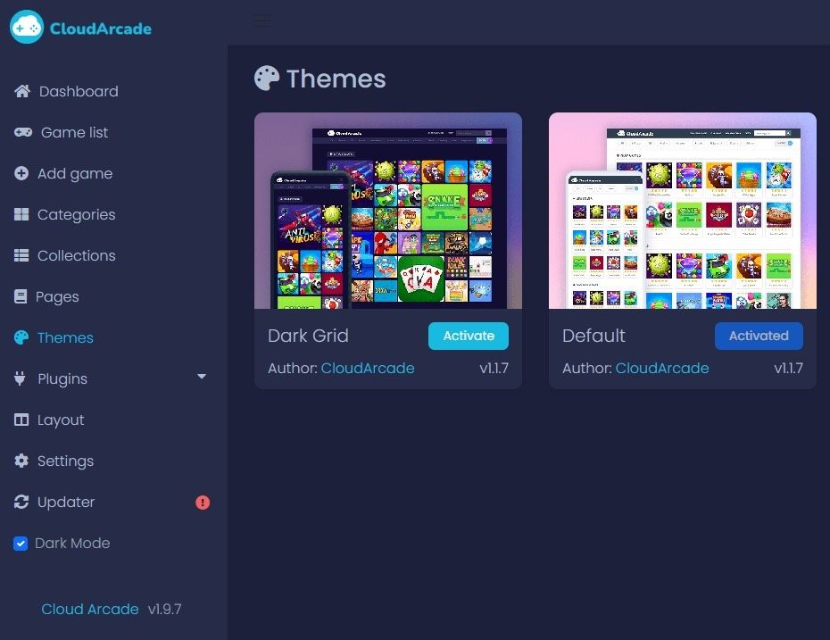 CloudArcade内置强大插件机制,目前已集成3款主题插件与43个功能插件(含CloudArcade WP),支持按需启用。