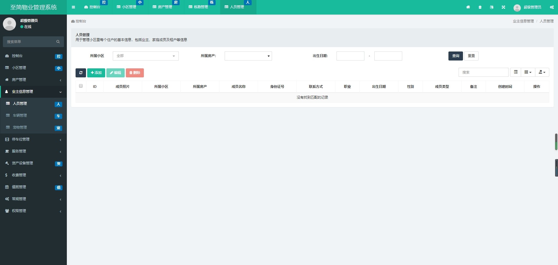 预设超级管理员、小区管理员、普通员工、业主四类角色,亦可自定义角色并灵活分配权限。