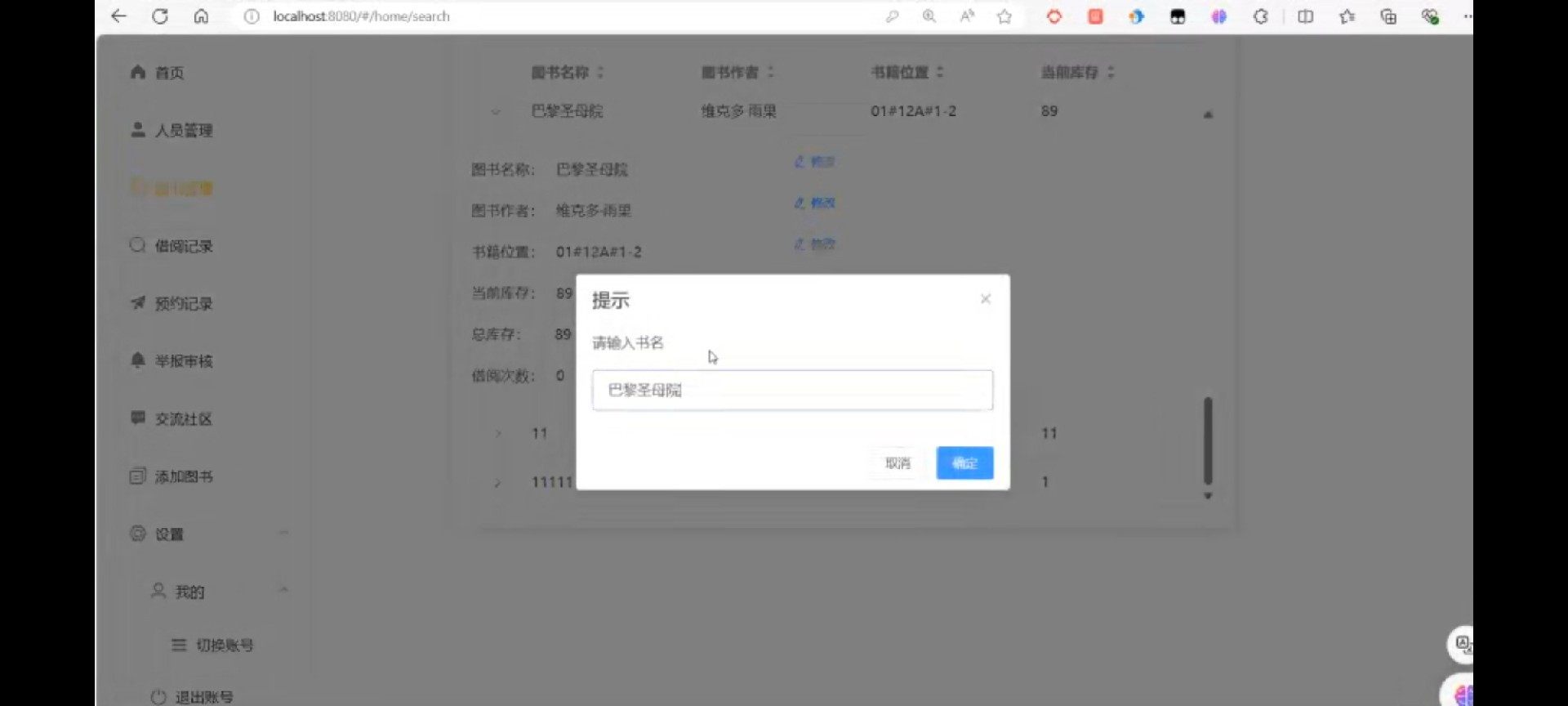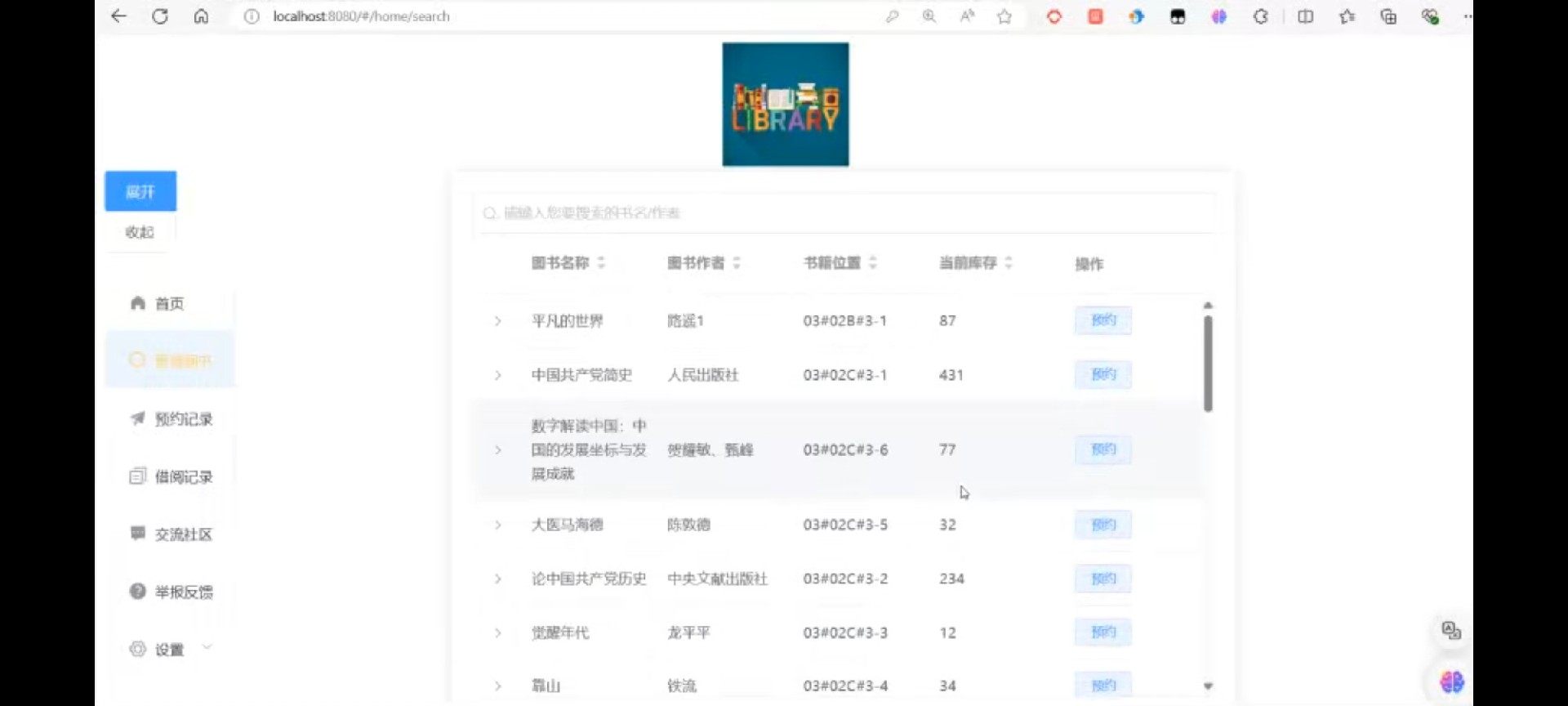 项目打包包含高清功能演示视频,直观展示登录、图书查询、借阅归还、用户管理等核心操作流程。
