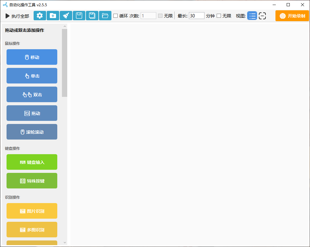 支持鼠标移动、单击、双击、拖拽等操作,同时具备键盘文本输入与特殊按键模拟功能,满足日常自动化需求。