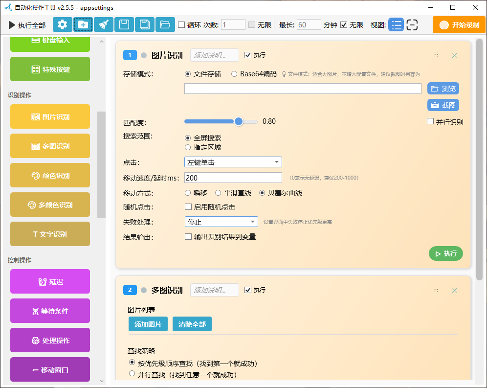 内置图像识别、颜色识别和OCR文字识别三大核心技术,可精准定位屏幕元素,实现智能化交互响应。