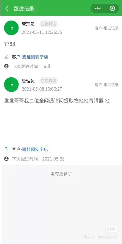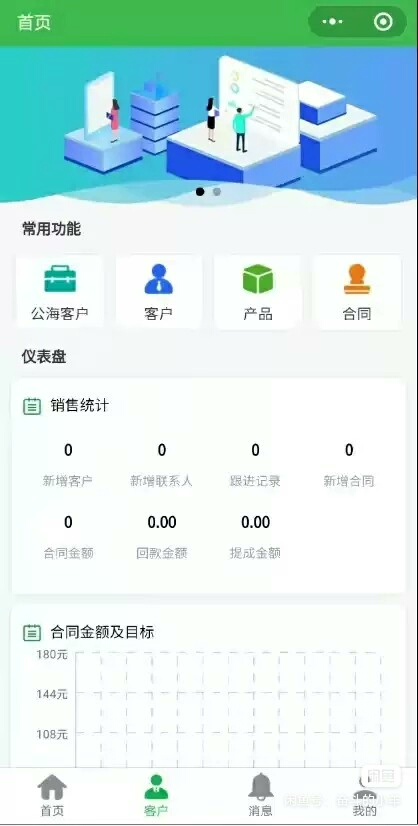 该CRM系统不仅包含完整的PC管理后台,还配套开发了微信小程序端,便于销售人员在外勤时实时查看客户信息、记录跟进动态、提交工作报告。