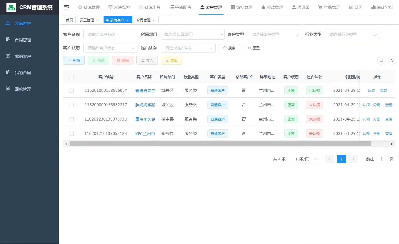 系统底层使用MySQL作为核心数据库,结构清晰、查询高效,支持大规模客户数据存储与复杂业务逻辑处理,保障数据安全与一致性,同时便于后期数据迁移与备份。