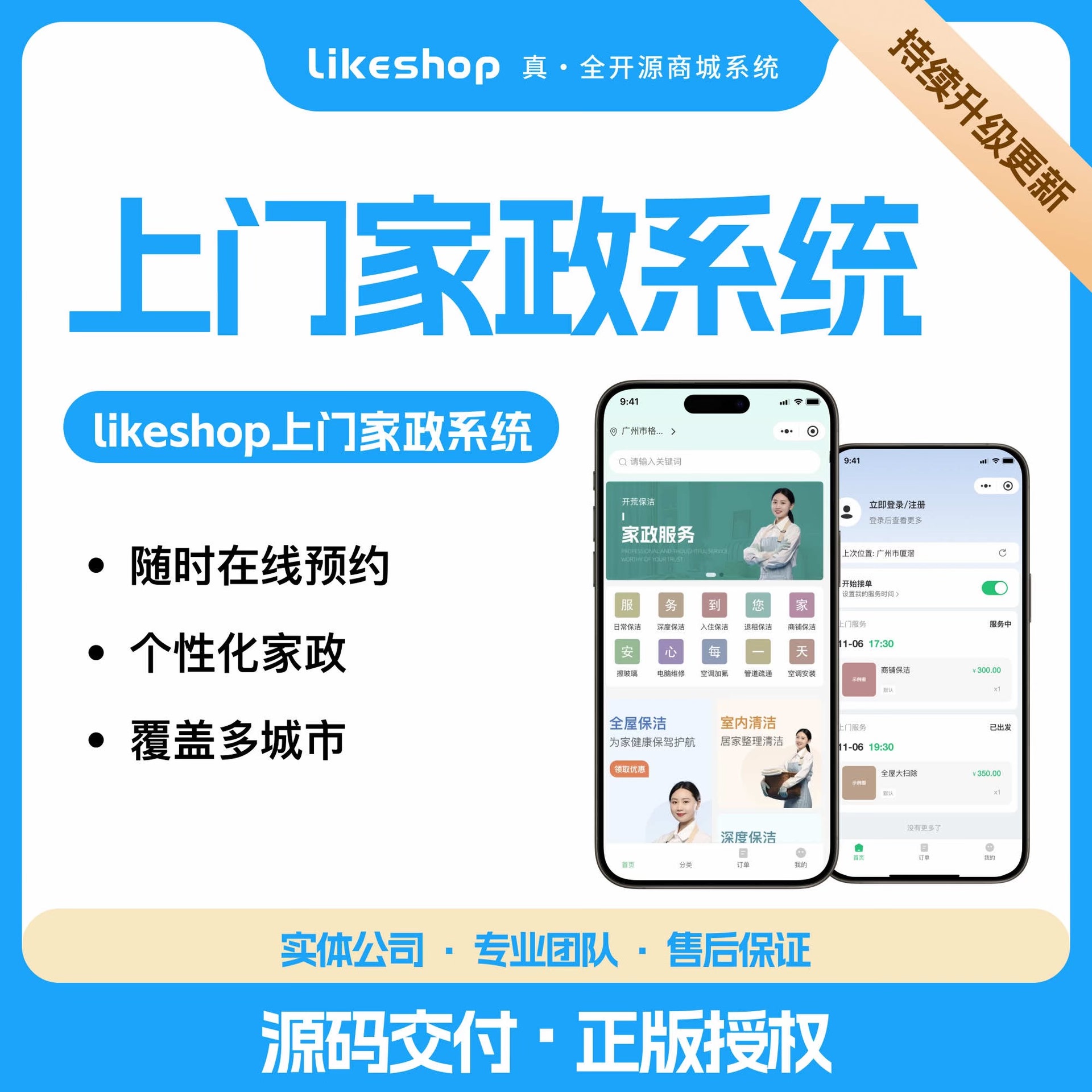 本款Likeshop上门家政专业版基于PHP语言开发,配套小程序端,是一款功能完备、结构清晰的家政服务系统源码。