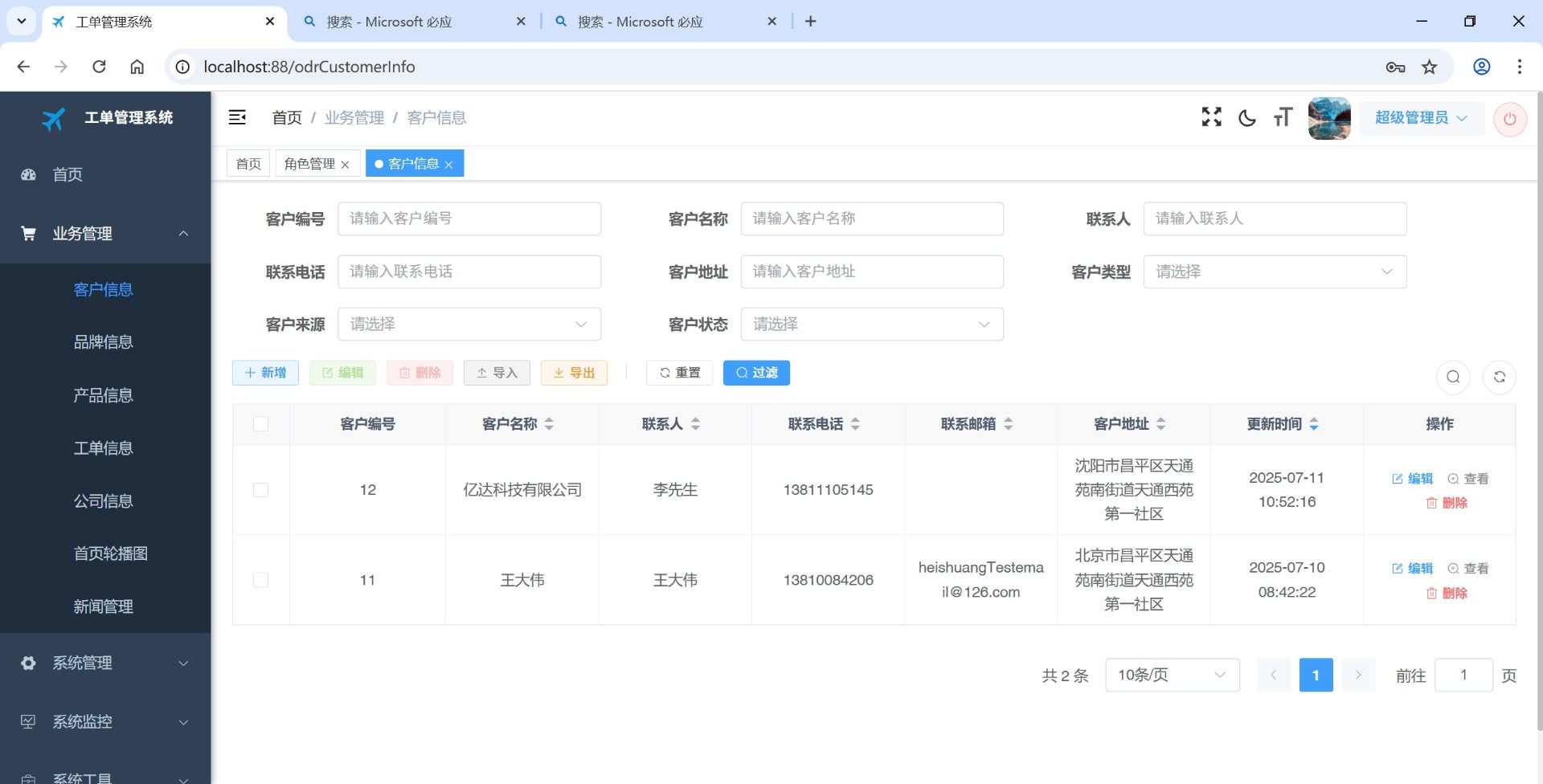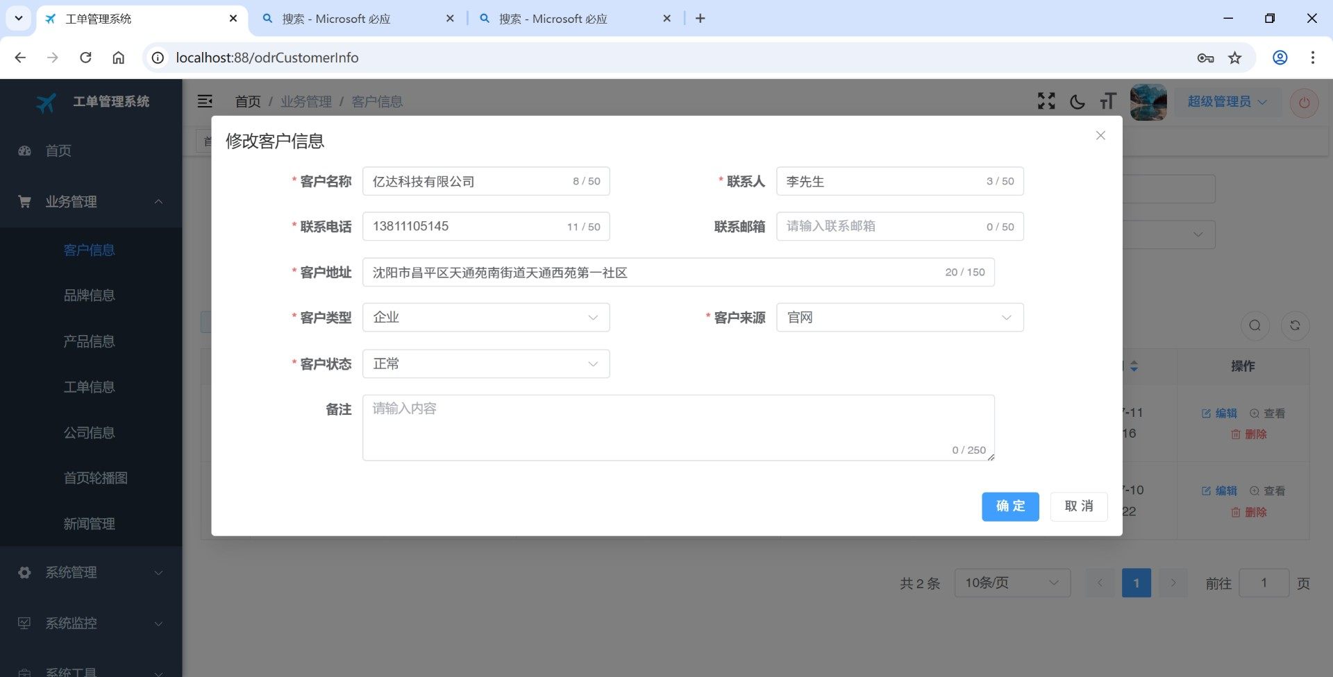 包含客户资料维护、品牌信息配置、产品数据管理、工单全流程跟踪、企业信息设置、首页轮播图更新及新闻内容等功能。