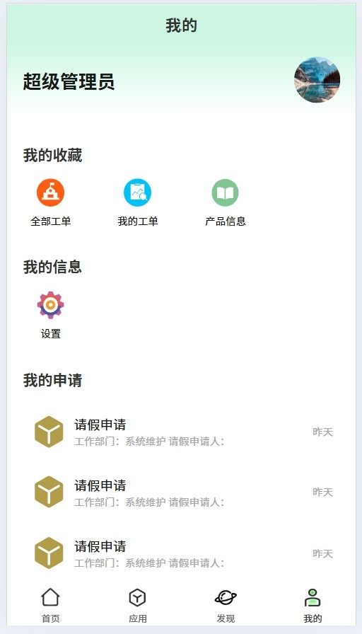 用户可在移动端查看产品详细信息,访问发现页、应用中心、设置页和个人中心,支持修改昵称、头像等基本信息,提升用户体验与交互完整性。