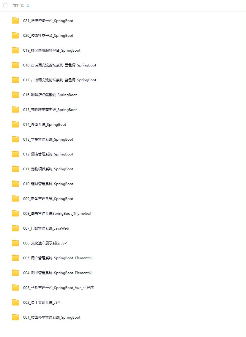 所有项目均提供完整源码,适合用于学习、毕设、项目参考或二次开发,帮助开发者深入理解全栈开发流程。