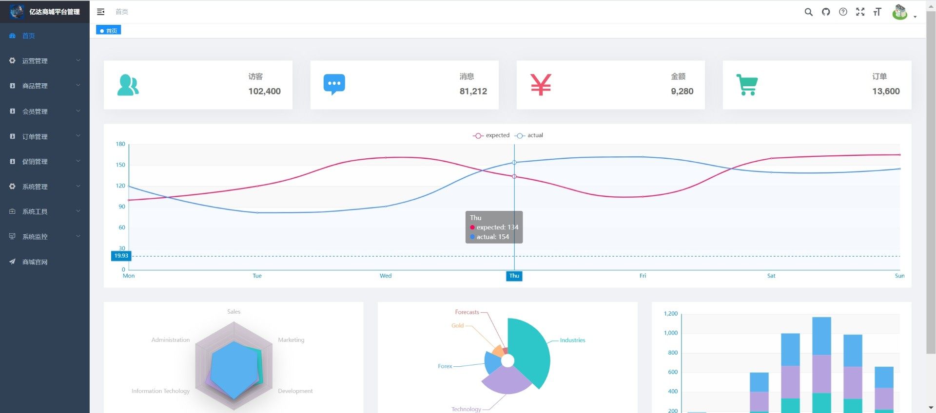 管理后台采用经典的若依权限管理系统,前端使用Vue2 + Element UI + Axios,后端基于Java8 + SpringBoot + Redis + MySQL8,实现高性能数据处理与缓存机制。