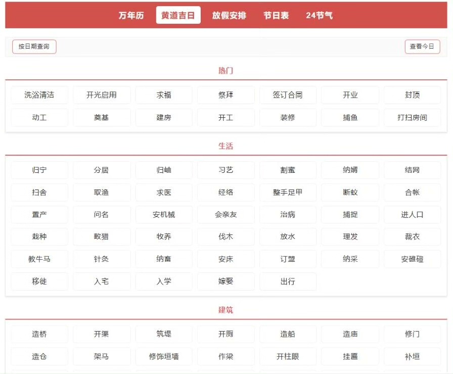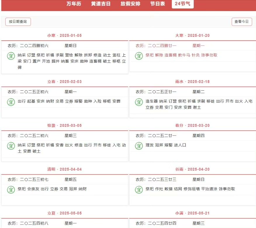 系统内置数据连接量超360万条,涵盖多年日历、节气、吉凶宜忌等信息,无需额外采集,数据全自动同步更新,特别适合用于长期运营的站点项目,助力SEO排名提升和权重积累。