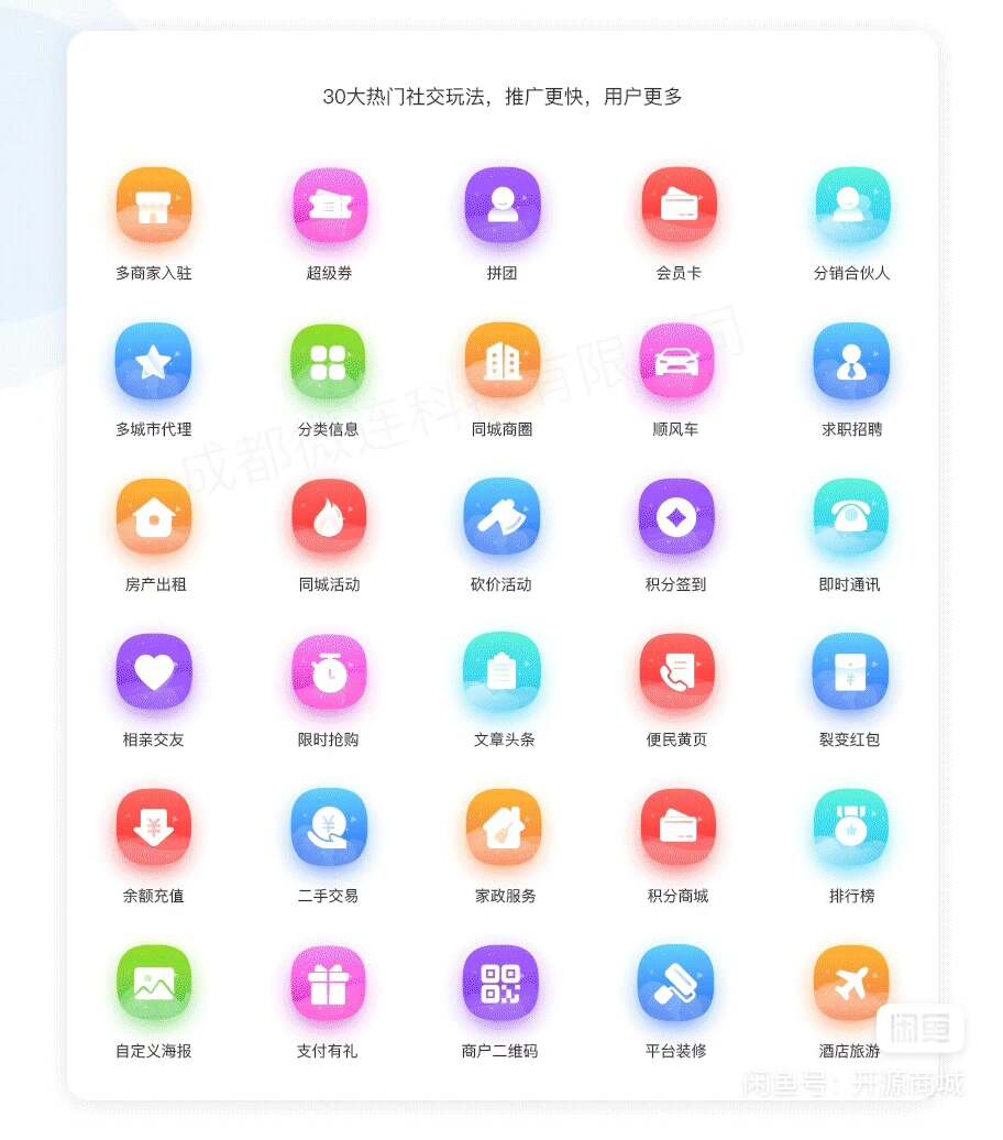系统集成了丰富的功能模块,涵盖同城分类信息、本地好店推荐、招聘求职、优惠抢购、拼团砍价、线上商城、活动报名、头条资讯、抽奖互动、电话黄页、实名认证、每日签到、拼车出行、红包互动、子站点管理、相亲交友等多种实用功能,满足城市居民日常生活所需。