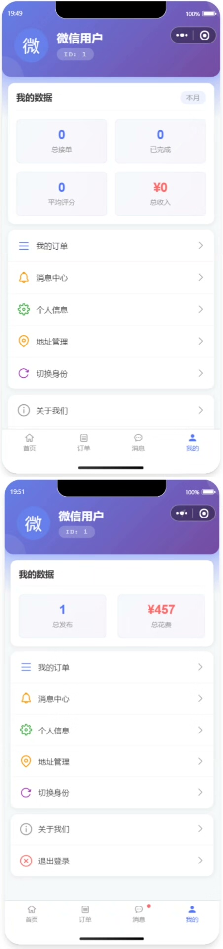 系统支持用户在“家政老师”(即服务需求方)与“家政人员”(服务提供者)之间自由切换,满足多样化使用场景。
