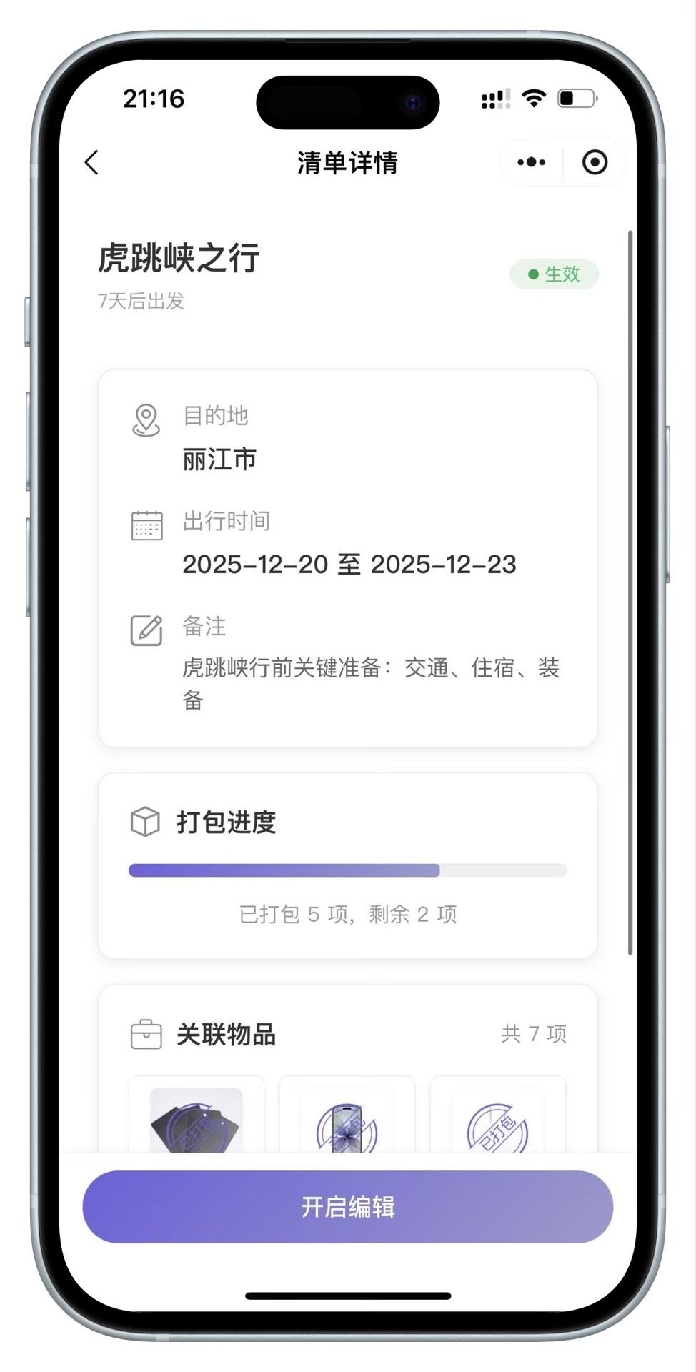 源码内置多项实用功能模块,包括智能穿搭推荐、出行物品清单管理以及行李打包进度追踪等特色功能。