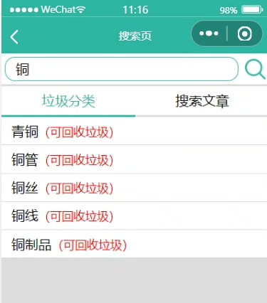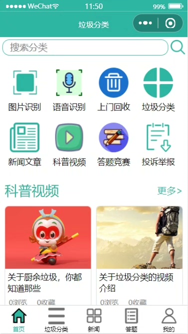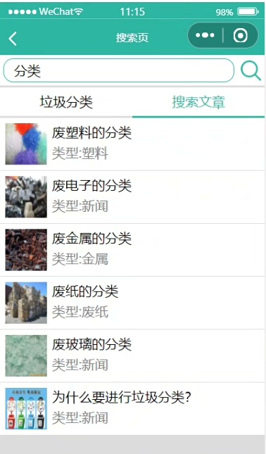 用户可搜索文章、视频等内容,获取权威科普知识,形成良好的垃圾分类习惯。