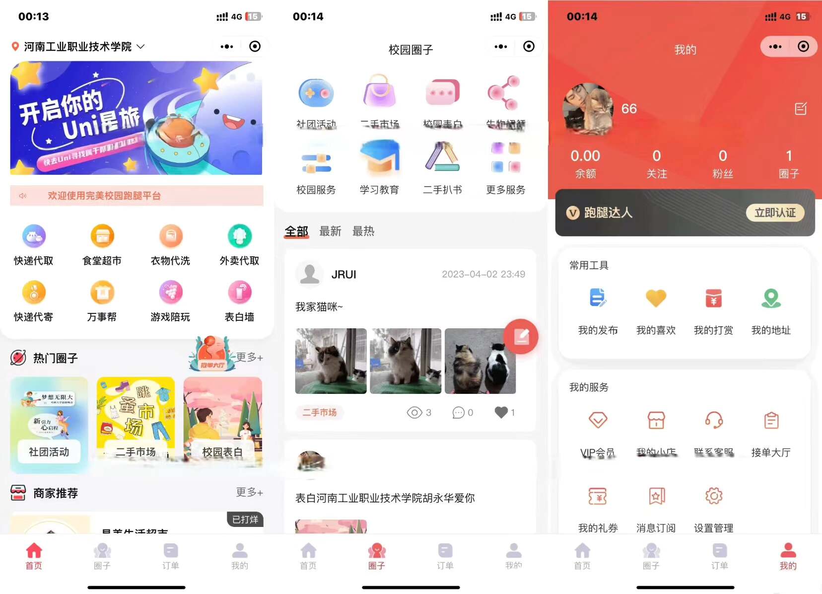 同时内置多种功能模块,涵盖校园跑腿代办、外卖配送、快递代取、二手物品交易、校园表白墙等高频应用场景,全面满足学生群体的日常服务需求。