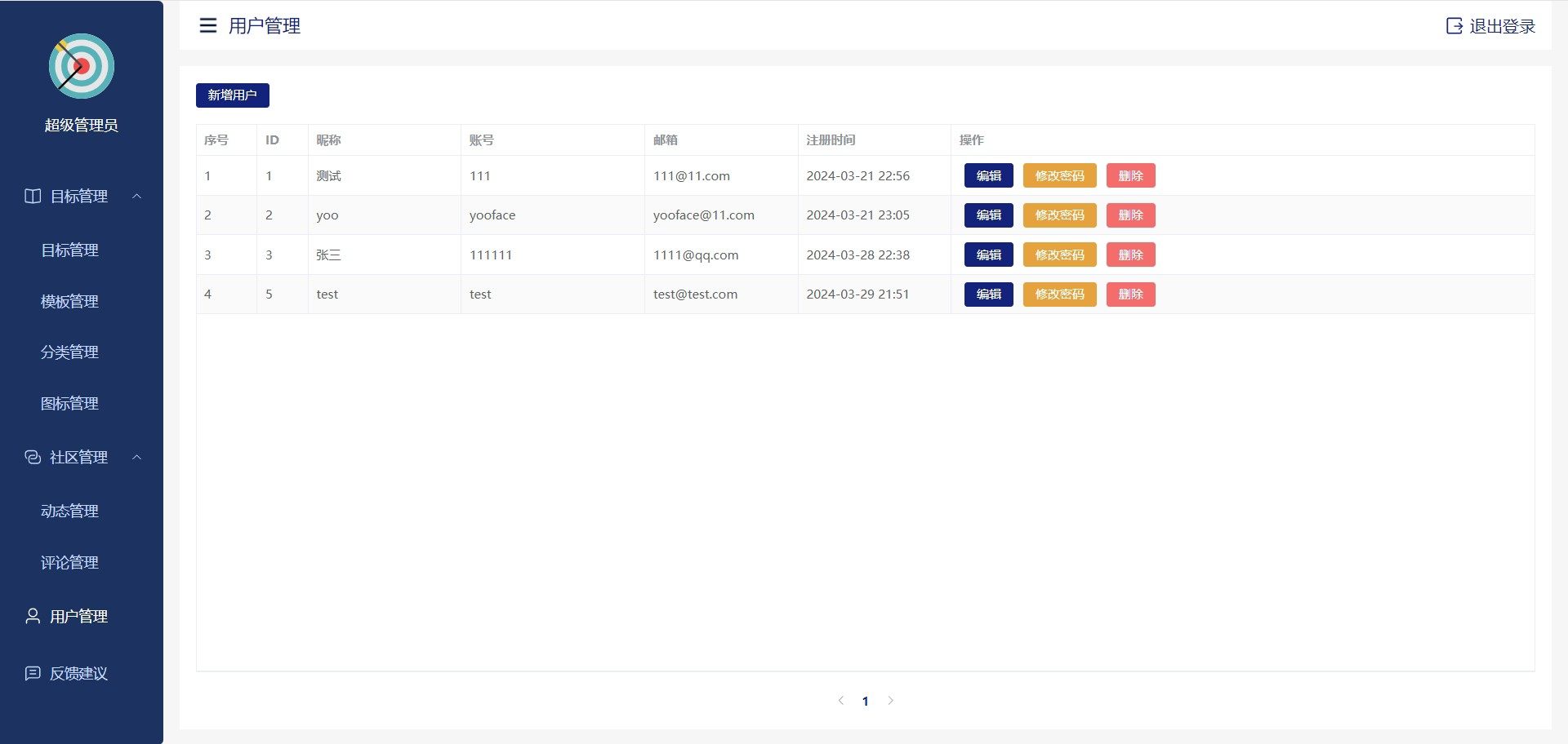 还可查看并处理用户的动态、评论信息,新增或管理用户账号,以及查阅用户提交的反馈建议,提升整体管理效率。