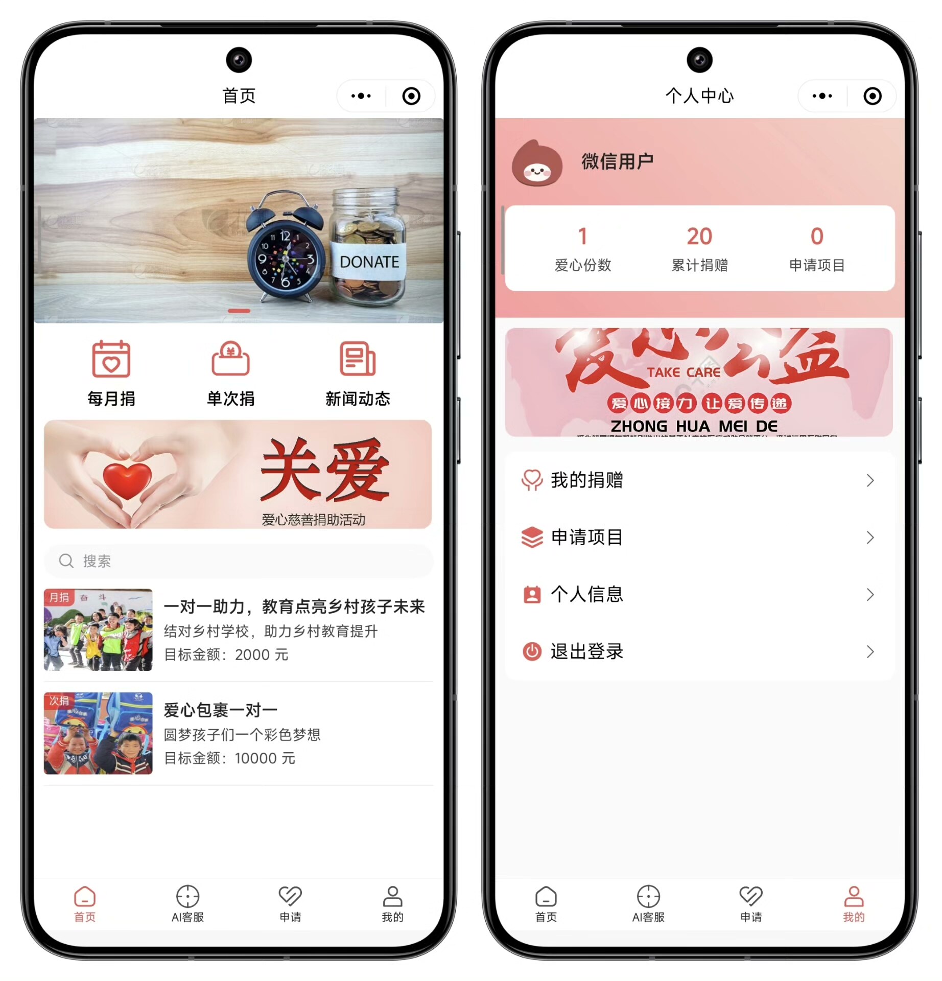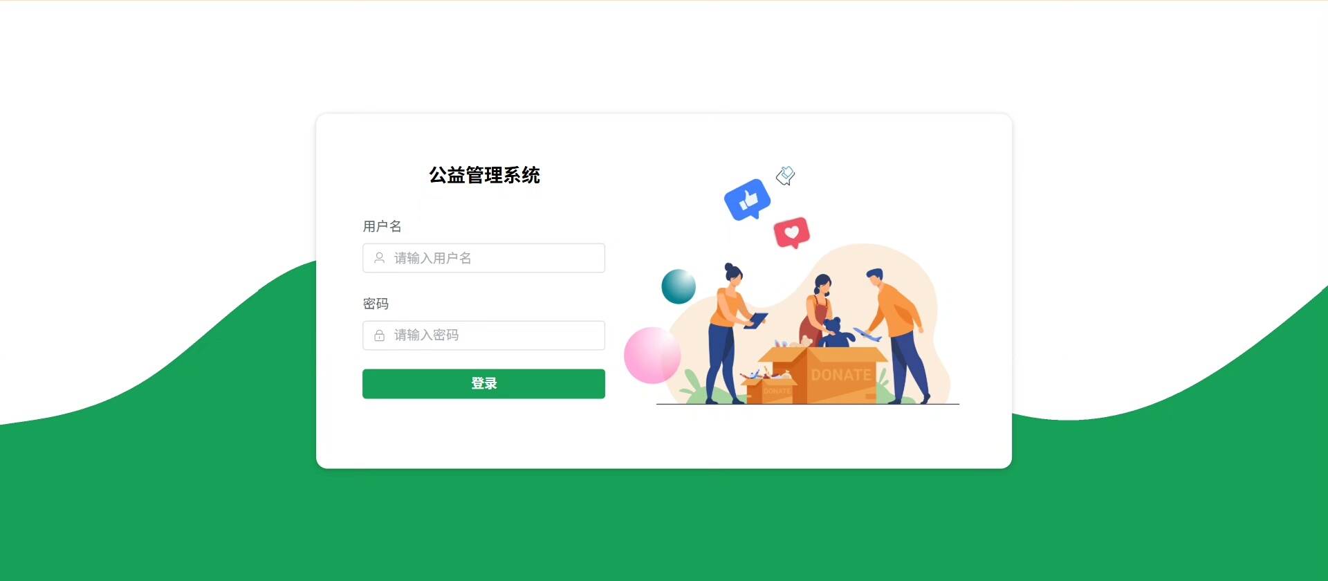 系统预设两种核心角色:普通用户可浏览公益项目、发起捐赠、查看进度;管理员则拥有后台管理权限,包括项目审核、数据统计、用户行为监控等功能,保障平台透明运行。