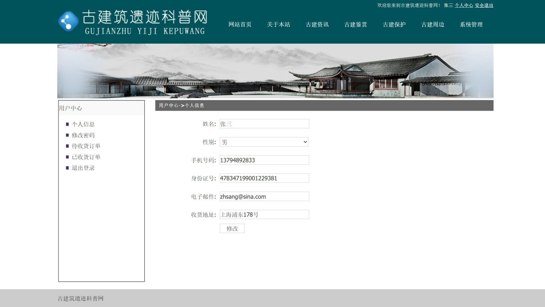 系统集成了多个实用功能模块,涵盖用户注册与登录、网站简介、行业资讯、古建筑艺术鉴赏、文化遗产保护知识普及、古建主题周边产品展示、在线购物及订单管理等功能,满足科普传播与电商结合的双重需求。