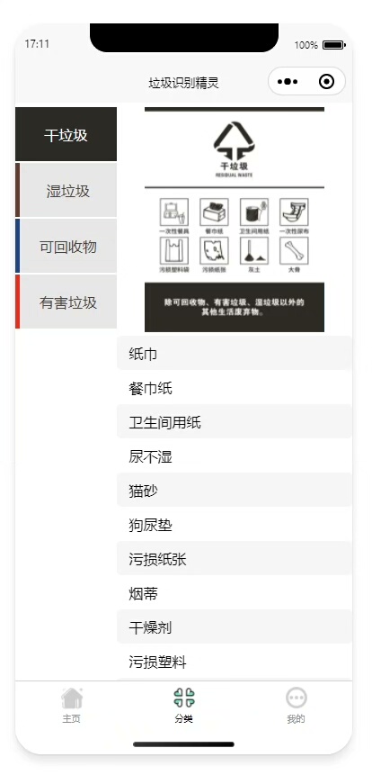 系统集成了AI图片识别技术,用户上传垃圾图片即可智能判断所属类别。