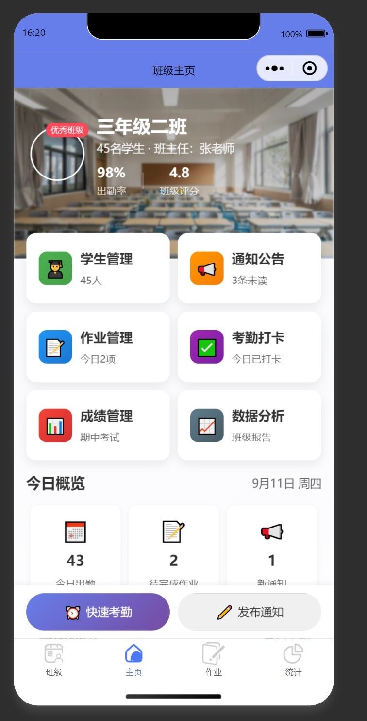 该源码特别适合中小学班主任、课外辅导机构、高校教师以及家教从业者使用,可用于日常点名、作业布置、学习进度跟踪等多种教学管理场景,显著提升工作效率。
