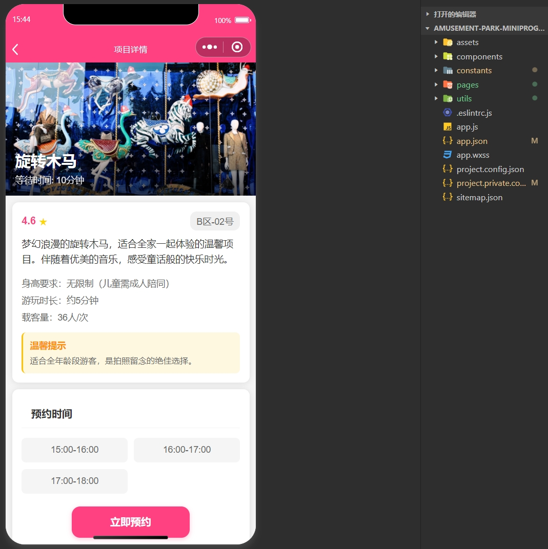 如需获取该套高性价比游乐园小程序,请点击下方‘我想要’按钮,我们将第一时间与您私聊,发送源码预览包、功能演示链接及详细报价单。