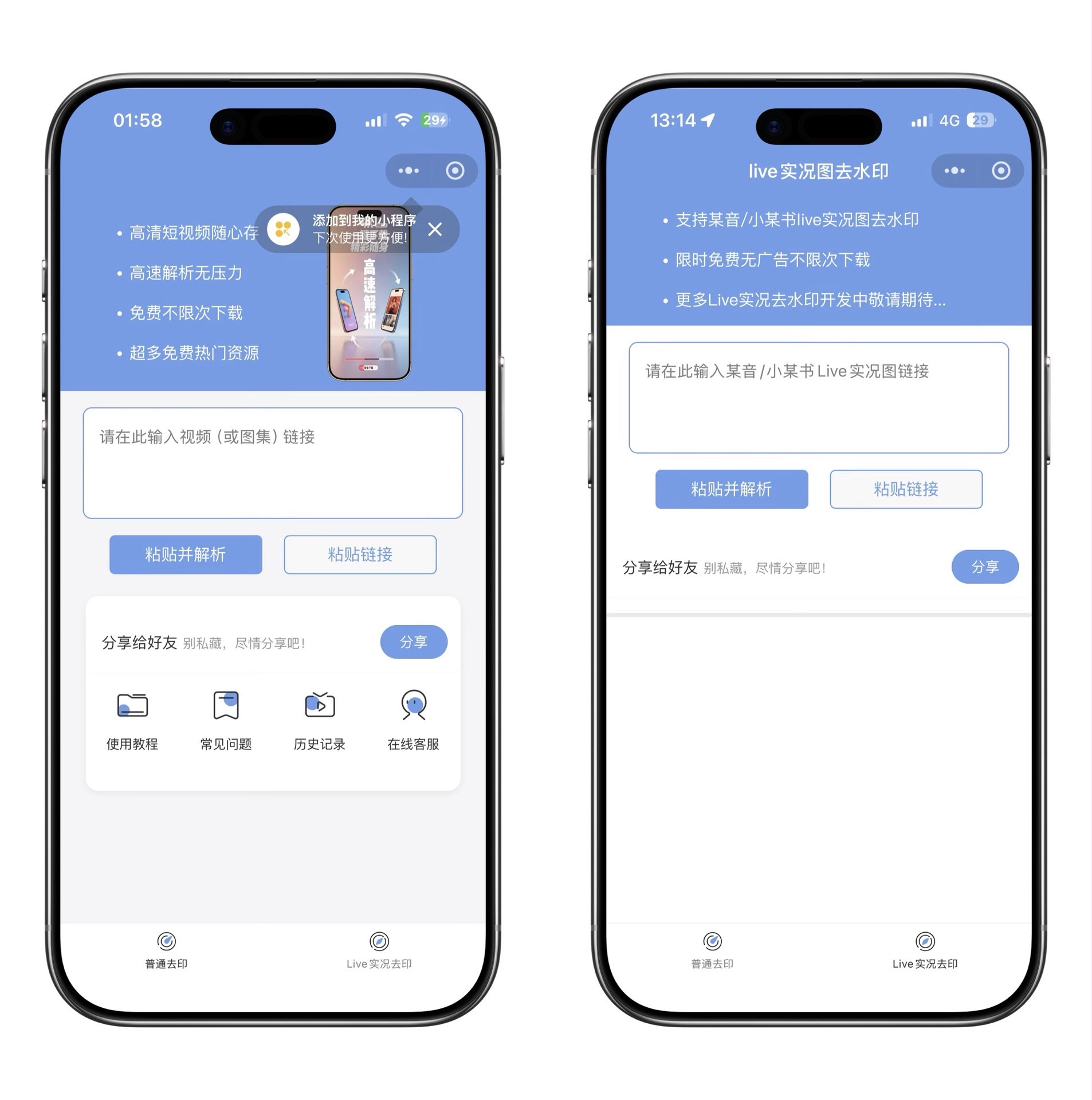 小程序不仅支持常规图片视频去水印,更独家兼容Live实况图处理,满足苹果用户高频需求。