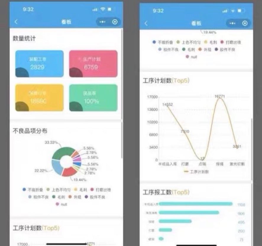 内置多种生产相关报表,如员工绩效统计、工资报表生成、不良品分布图与汇总表、生产进度报表、产量趋势分析等,助力管理层决策。