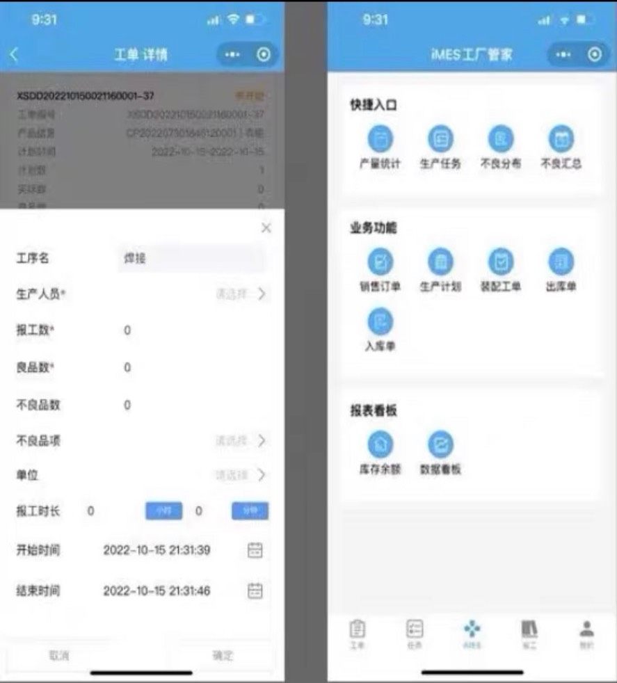 覆盖订单导入、生产计划排程、装配工单下达、具体工单执行、任务分配与员工报工记录,实现从接单到的全流程跟踪。