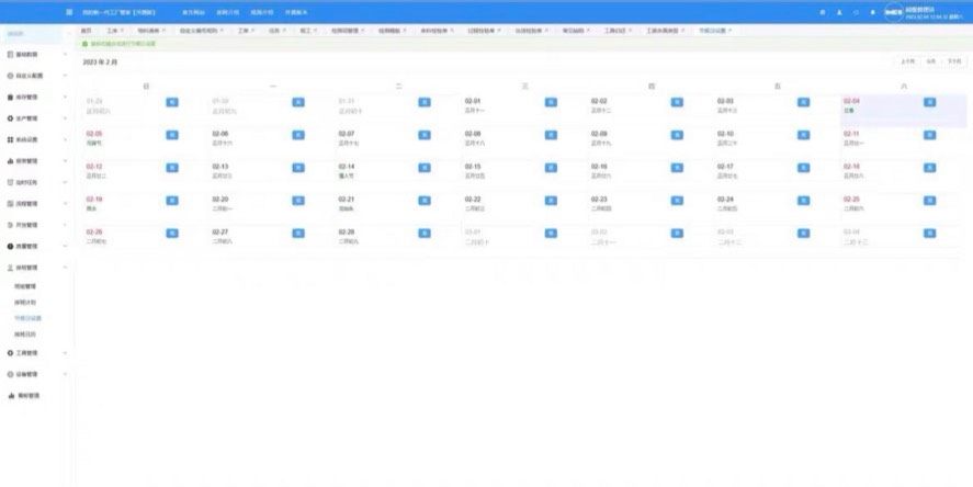 支持班组设置、节假日定义、排班计划制定与可视化排班日历展示,便于人力调配。