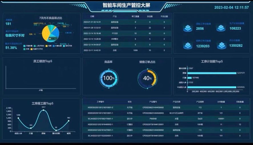 提供车间生产管控大屏、工单执行进度看板,实时反映生产动态,增强现场透明度。
