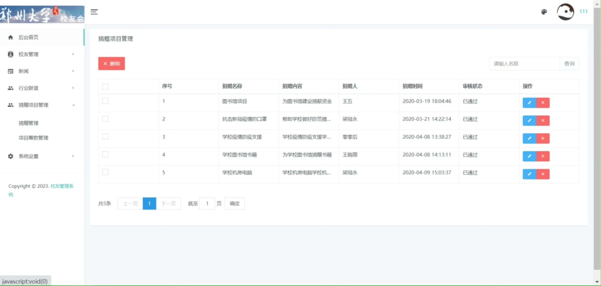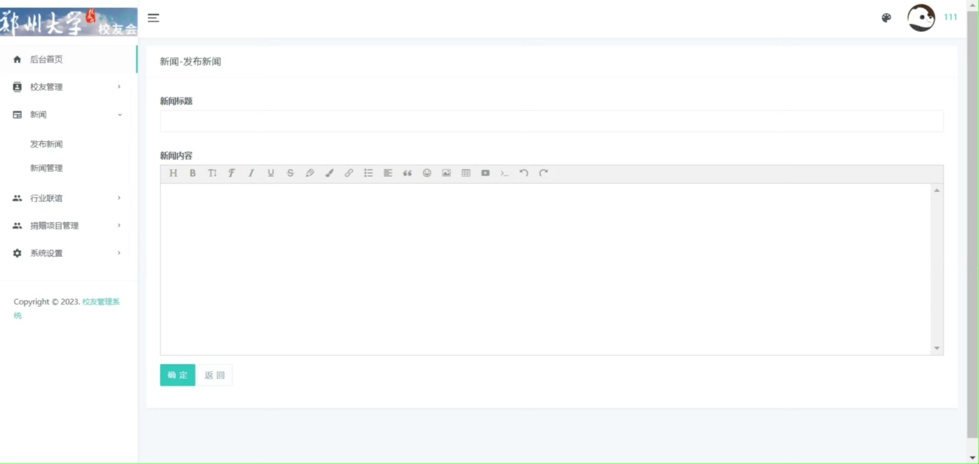后台为管理员提供全面的管控能力,包括管理员登录验证、校友信息维护、新闻内容发布与管理、行业联谊活动组织、捐赠项目创建与进度跟踪,以及系统基础设置等功能,确保平台运行规范、数据可控。