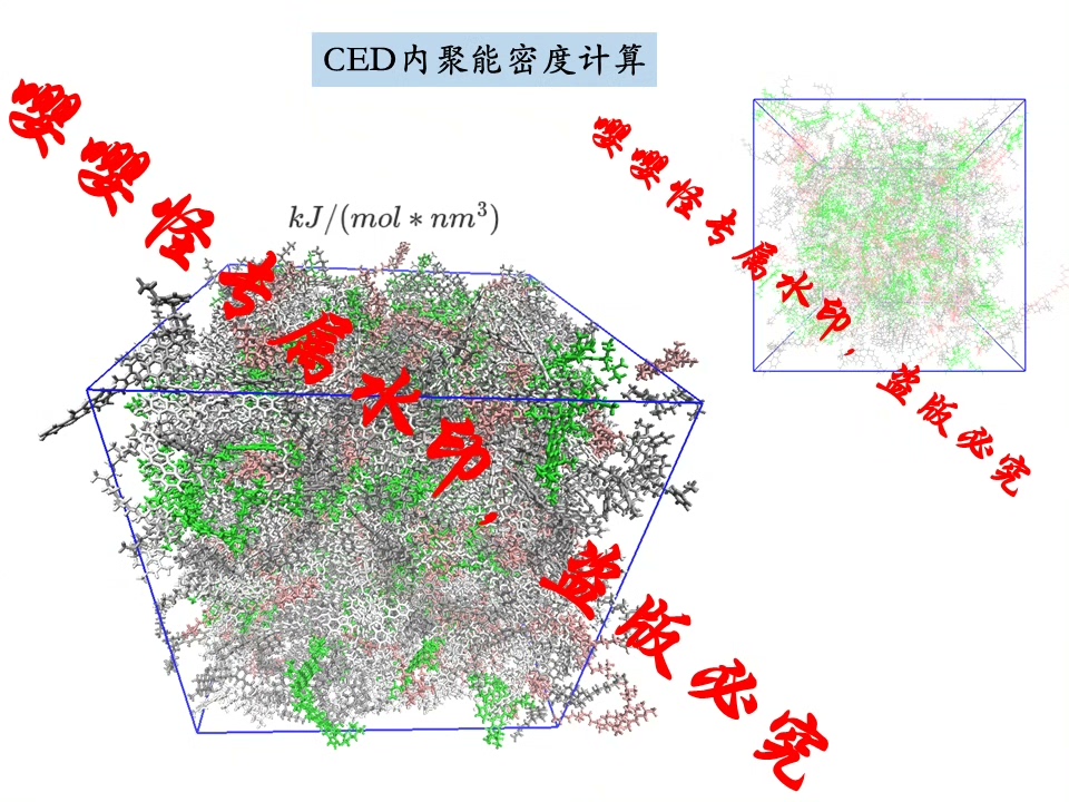 涵盖超临界CO₂模拟参数设置、多糖类物质(如直链/支链淀粉)建模、水合物剪切应力计算、电荷密度二维热图绘制、界面扩散系数(含Dz)分析、聚合物内聚能密度(CED)评估等多项高阶功能。