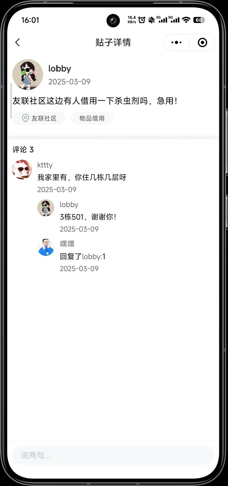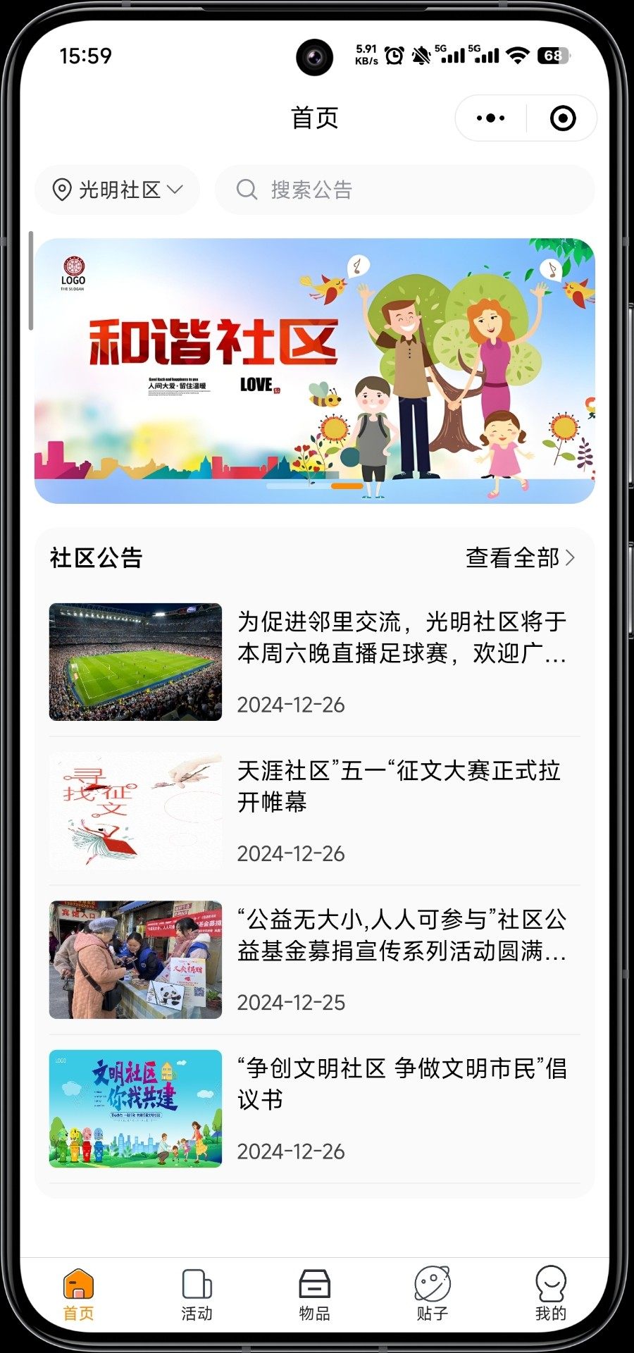 该小程序致力于增强居民之间的联系,支持信息、需求对接、物品借用、志愿服务报名等实用功能,推动智慧社区建设,提升居住幸福感与安全感。