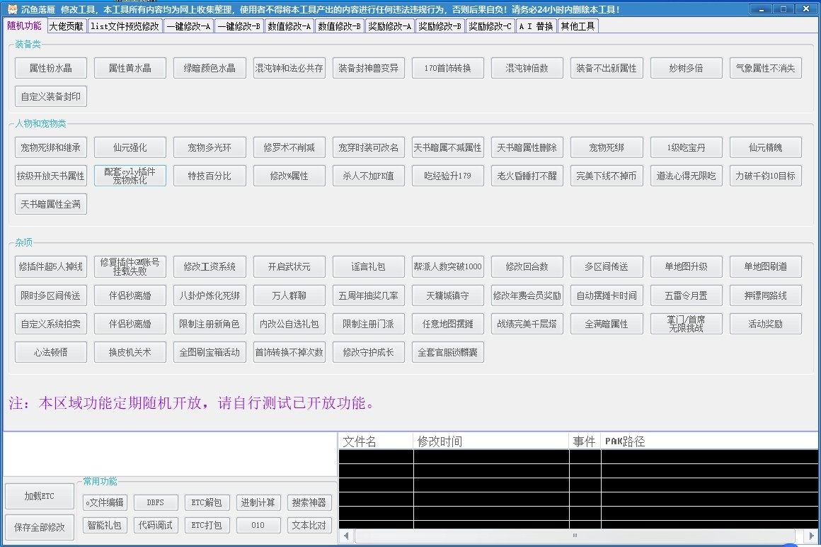 本工具集成了多种实用功能,专为问道玩家设计,支持ETC相关修改与自动化发货操作,极大提升游戏体验与效率。