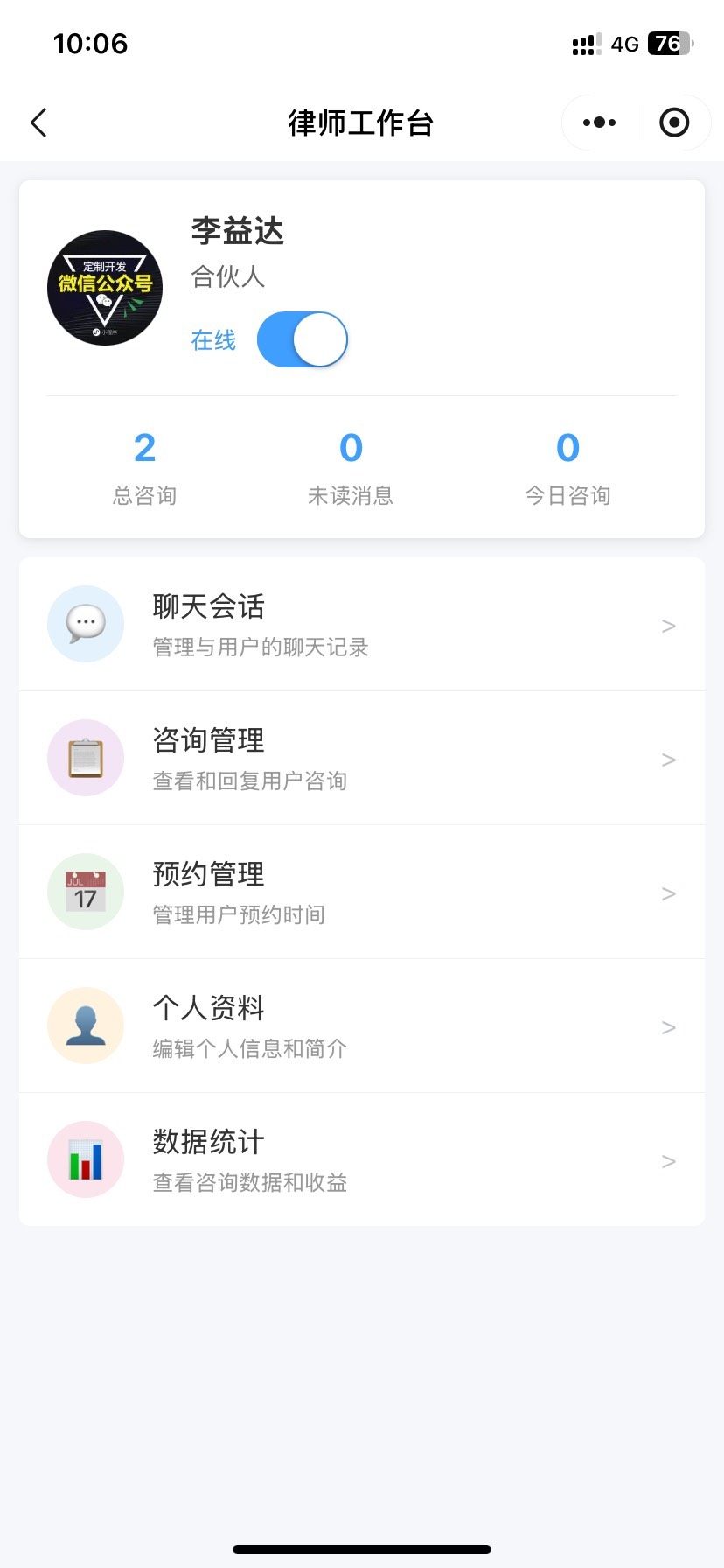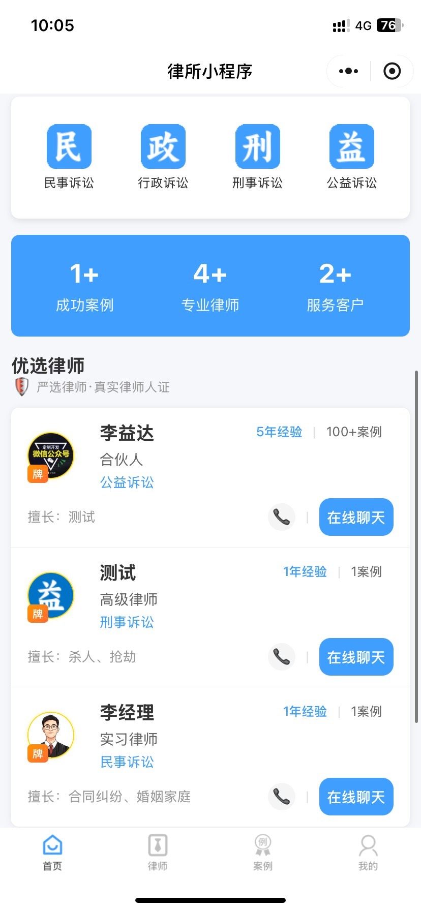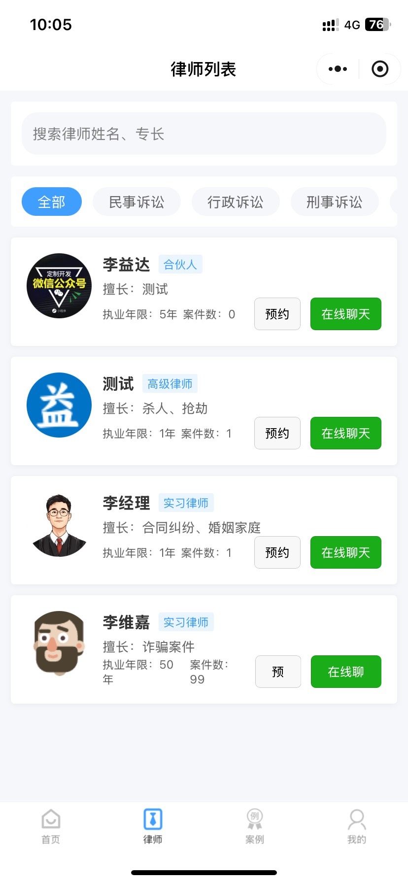 支持多名律师在线入驻,每位律师可维护个人简介与专长领域。