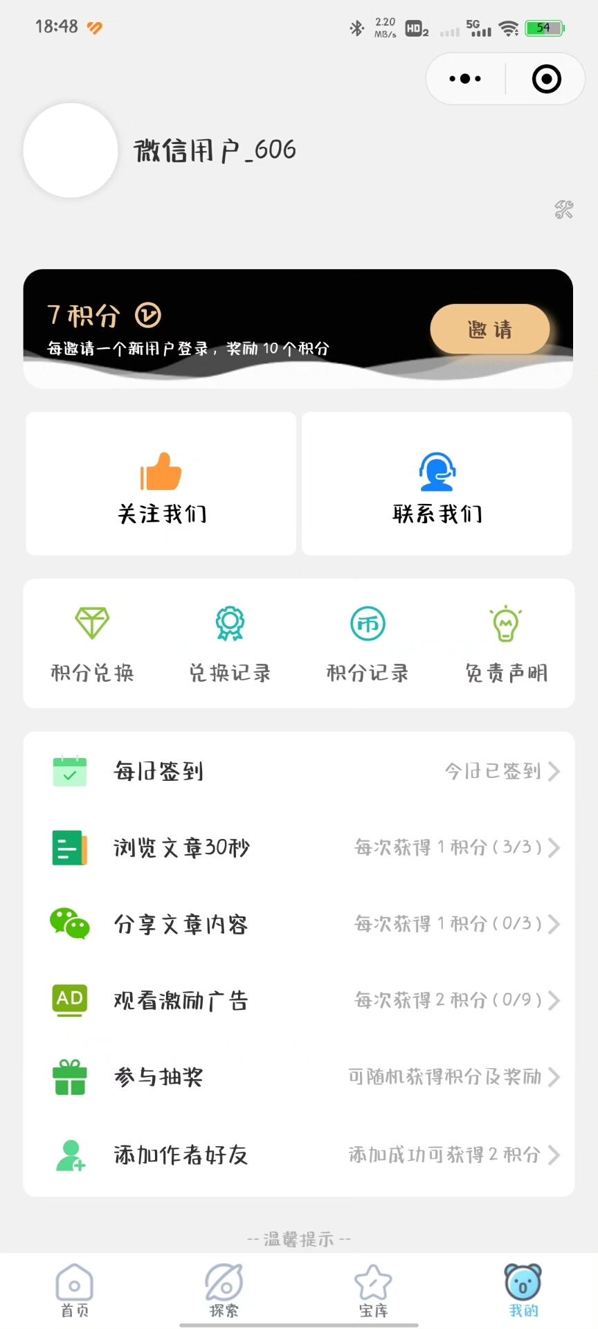 内置完整的积分激励机制,包含签到、任务领取、观看广告获积分等多种方式。