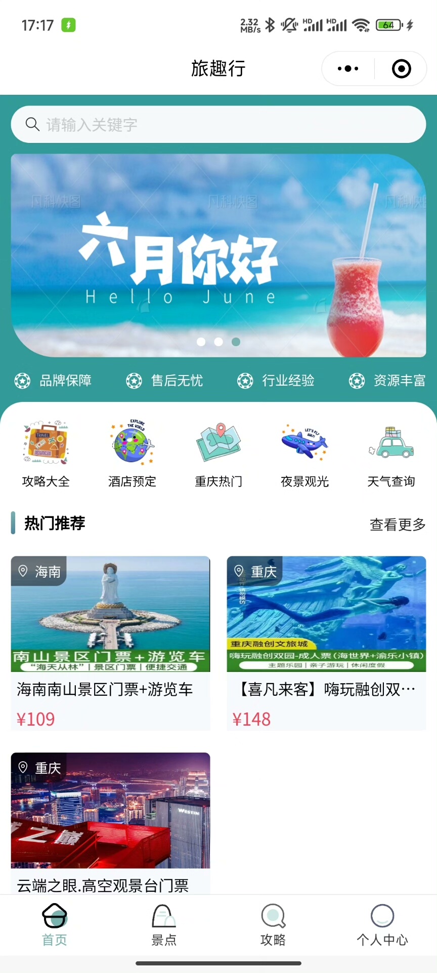 系统集成了景点门票、酒店在线预订、实时天气查询以及旅游攻略展示等常用功能模块,帮助开发者理解旅游类应用的整体架构与业务流程。