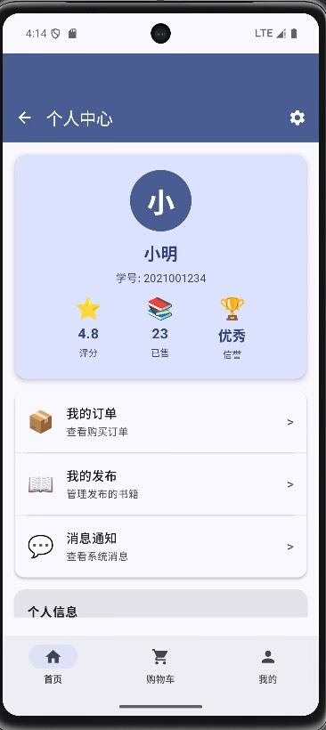 每位用户拥有独立的个人中心,展示历史交易记录、评分与信誉等级。